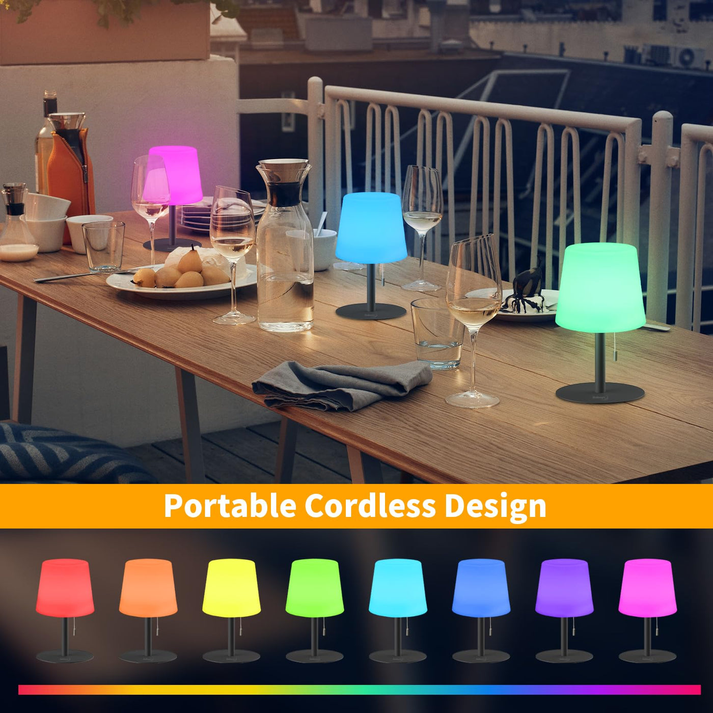 Tulbeys Warm & Rgb Cordless Lamp For Outdoor Patio Decor | Battery Powered | Farmhouse Table Lamp | White Desk Lamp For College