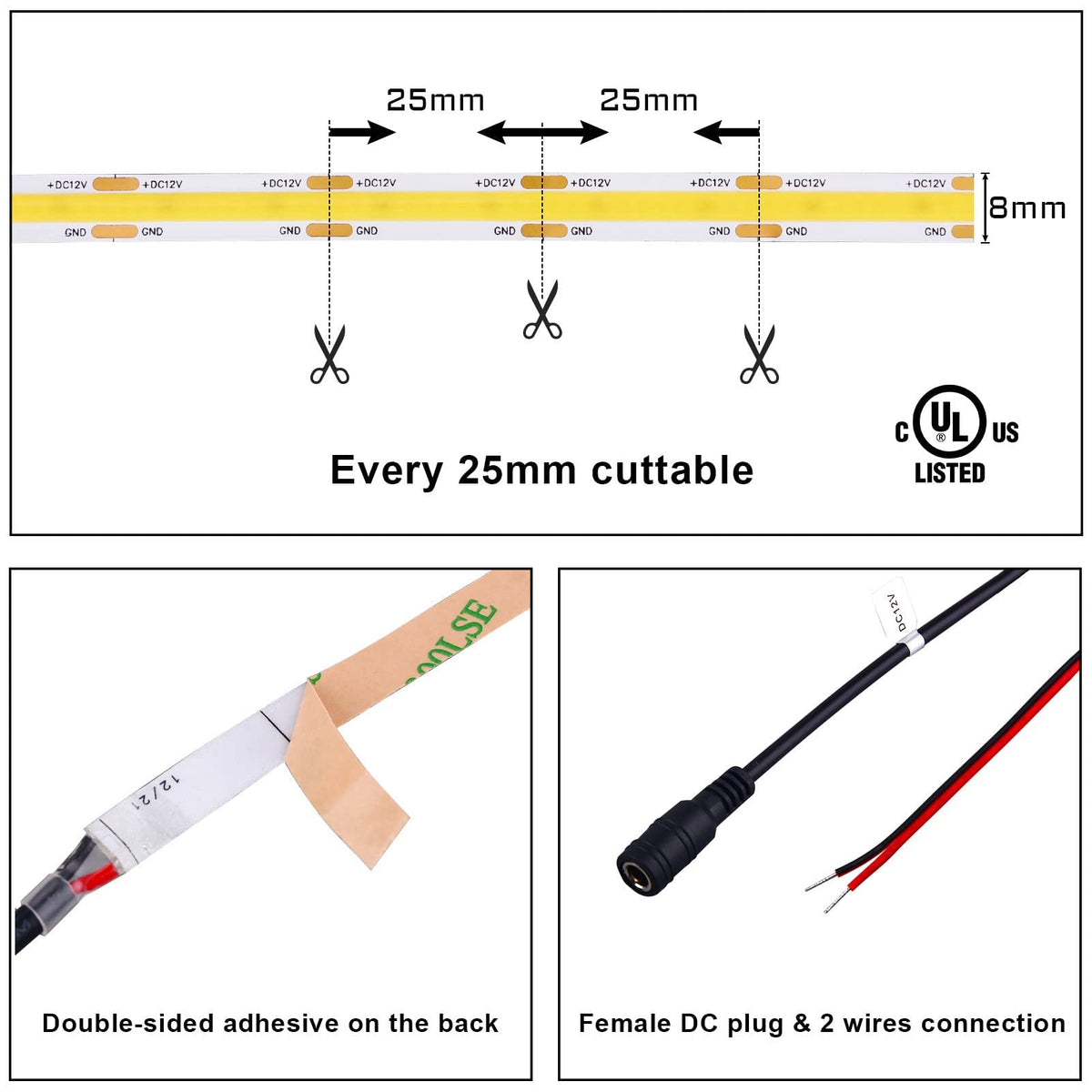 12V Cob Led Strip Lights 16.4Ft 3000K Warm White, Cri 90+ 5000Lm Super Bright , Ul Listed 480Leds/M High Density Flexible Tape For Cabinet, Home Diy Lighting
