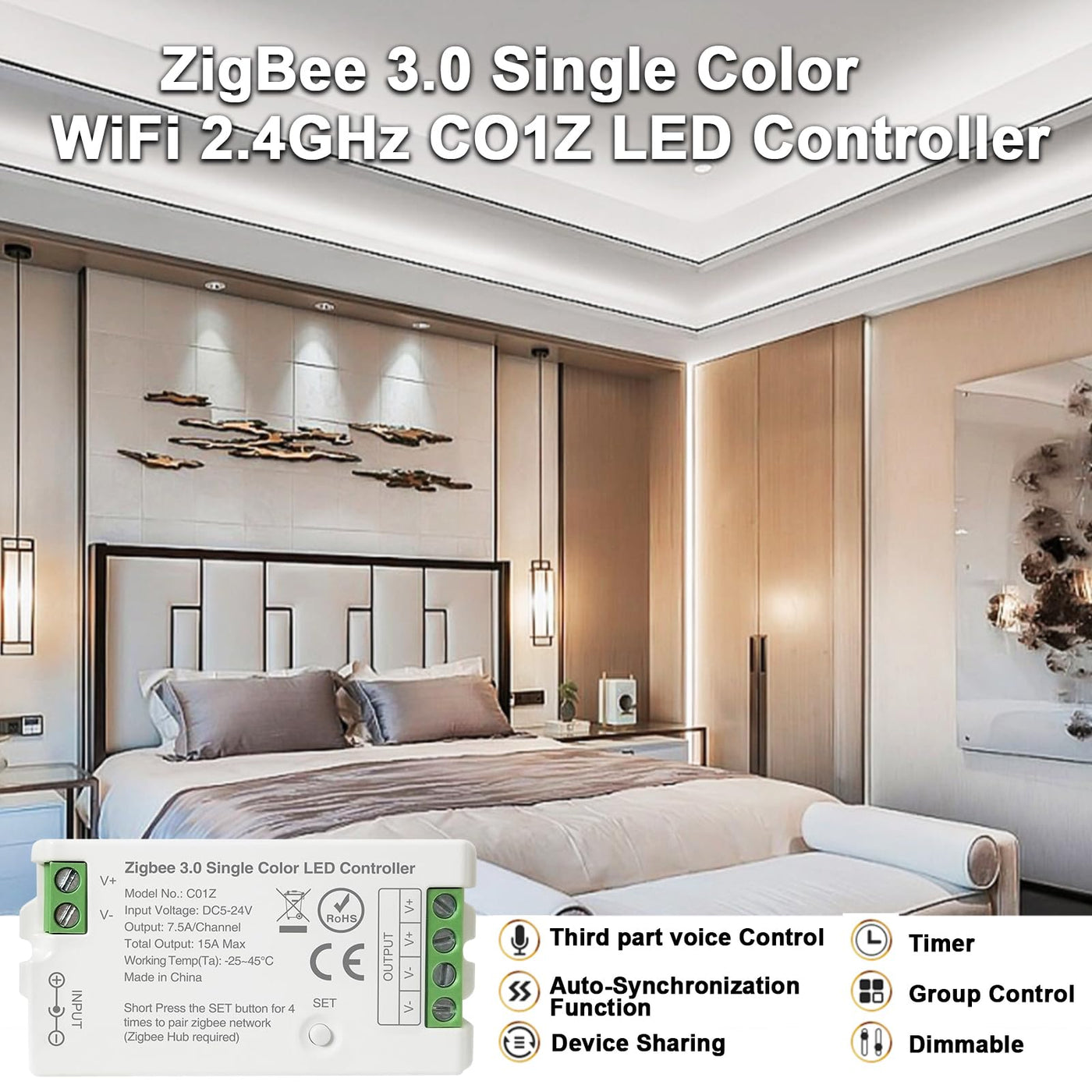 Tunichx Zigbee 3.0 Led Controller C01Z Single Color Pwm Led Strip Bulb Dimmer Compatible With Echo Plus Philip H-Ue Home-Kit Zig