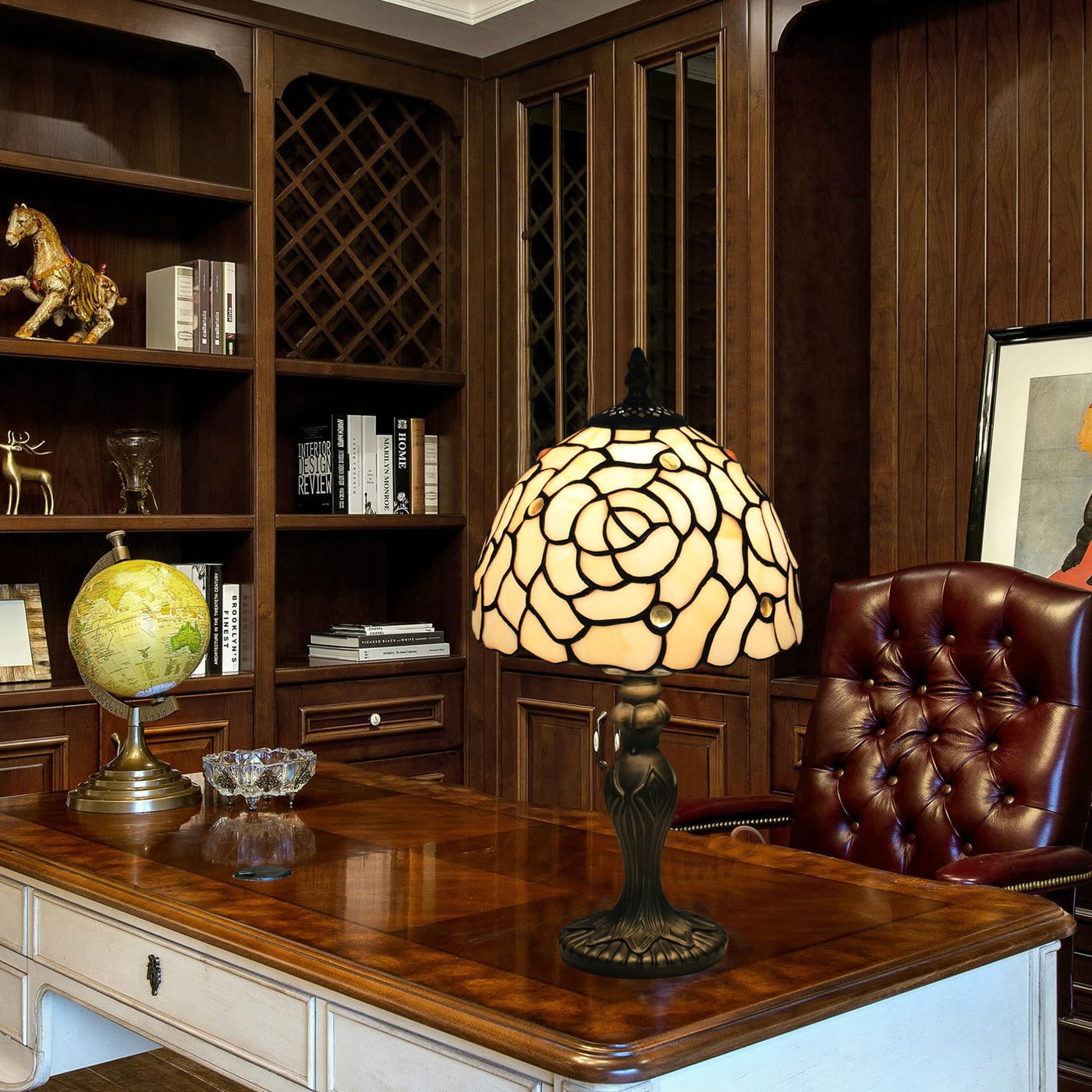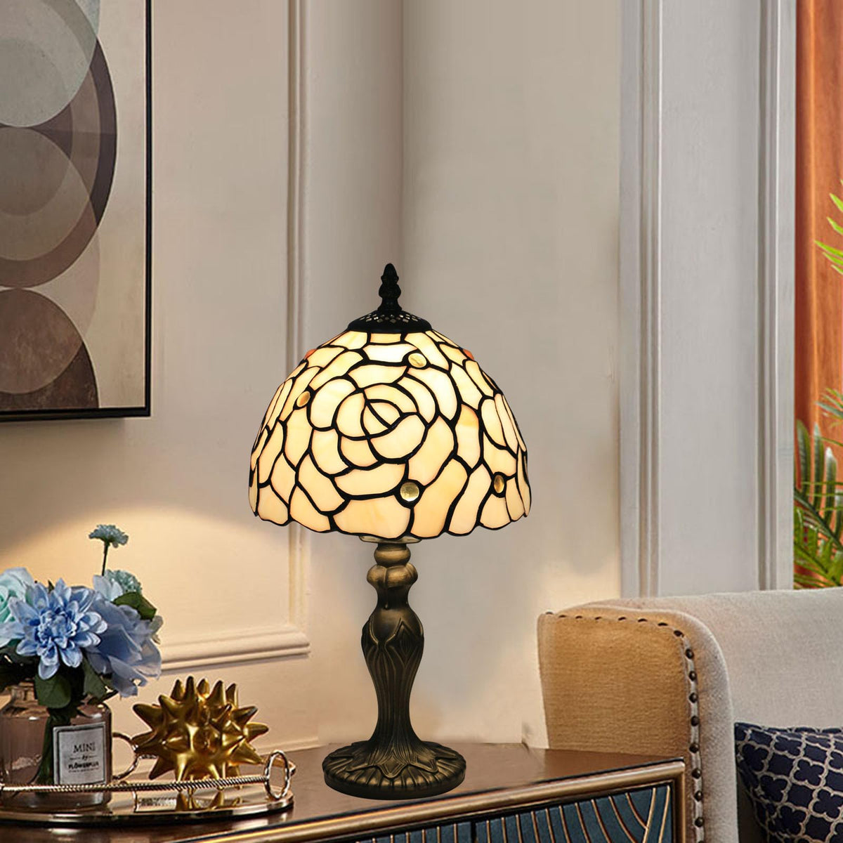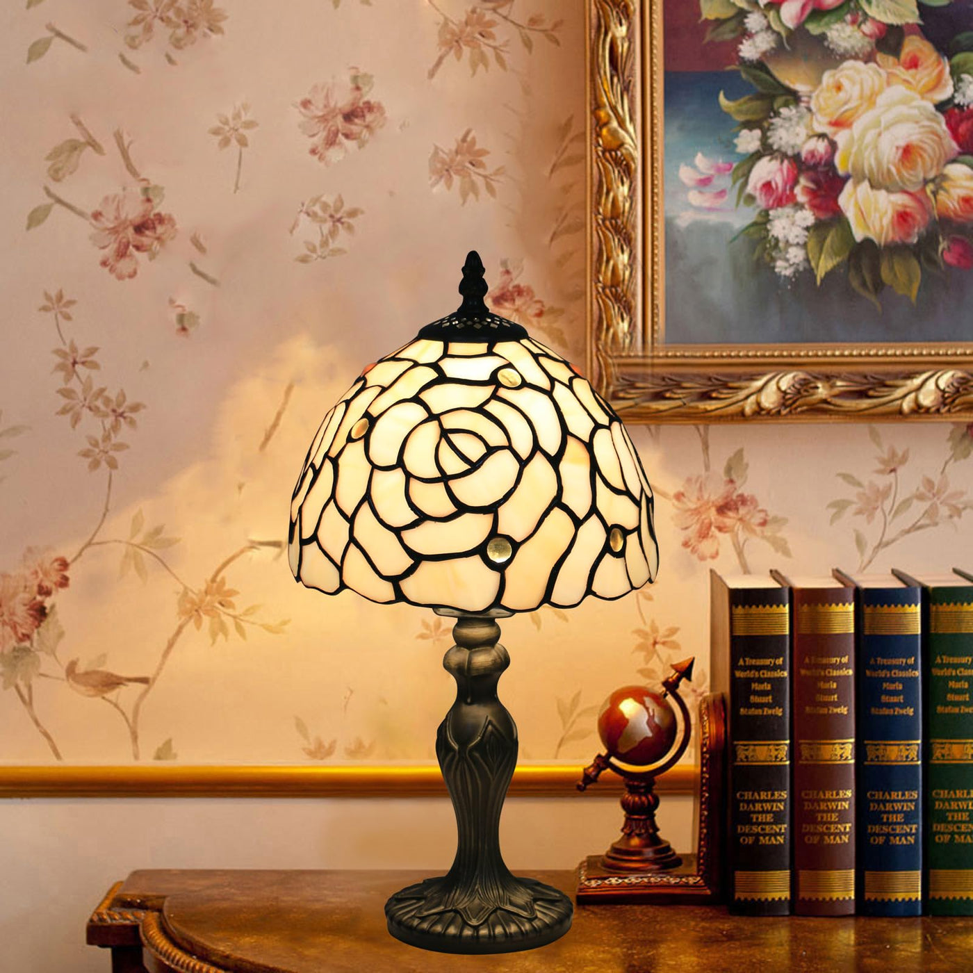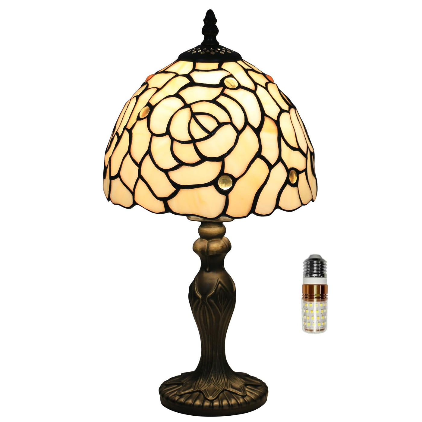 Tuomoxte Tiffany Style Small Table Lamp, 8X8X14.5 Inch Rose Stained Glass Lamp, Small Antique Side Table Lamps, Bedside Nightstand Lamp, For Bedroom Living Room Home Office,Led Bulb Include