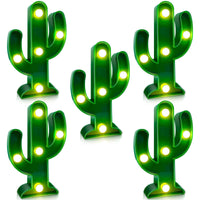 Q: How many LED lights are included in the cactus decor?A: Each LED cactus light is equipped with 5 ultra-bright warm white LED lights, providing a vibrant and inviting glow.