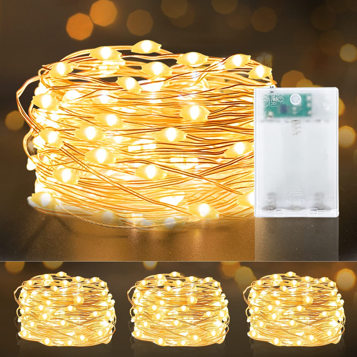 Turnmeon [ Timer ] 3 Set Fairy Lights, Total 60 Led, Warm White Battery Powered Copper Wire Fairy Lights, Decoration Outside Yard Party Home Bedroom Wedding Indoor Outdoor, 6.5 Ft 20 Led Each