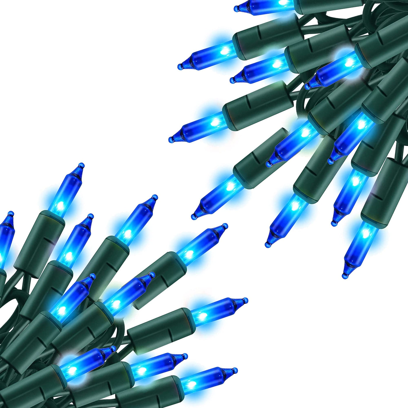 Includes 2 x 20ft mini string lights, 100 blue incandescent bulbs, 2 x spare fuses, and 8 spare bulbs.