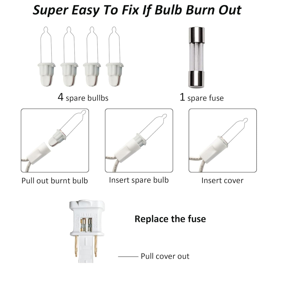 Q: What should I do if one bulb goes out?A: If one bulb in the TW SHINE Christmas lights goes out, the remaining bulbs will continue to function. You can replace the faulty bulb with one of the four spare bulbs included in the package.