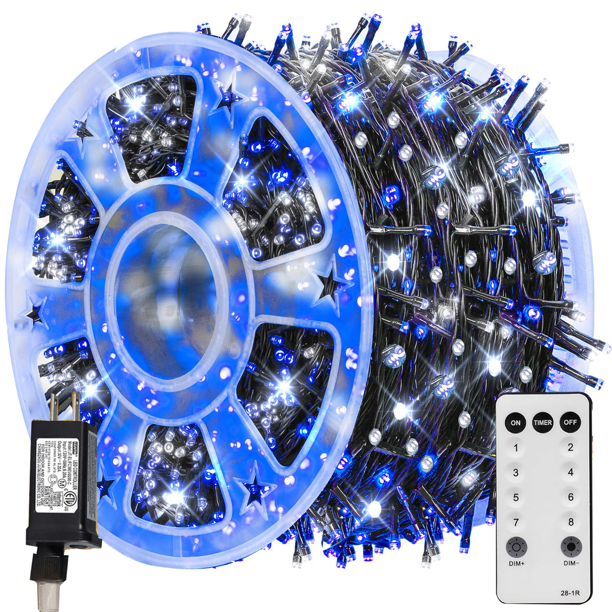 Tw Shine Christmas Lights 600 Led 196Ft Christmas String Lights Plug-In With 8 Modes Timer And Remote Waterproof Outdoor Decorations For Bedroom Wedding Party Yard Tree Decor Blue & White