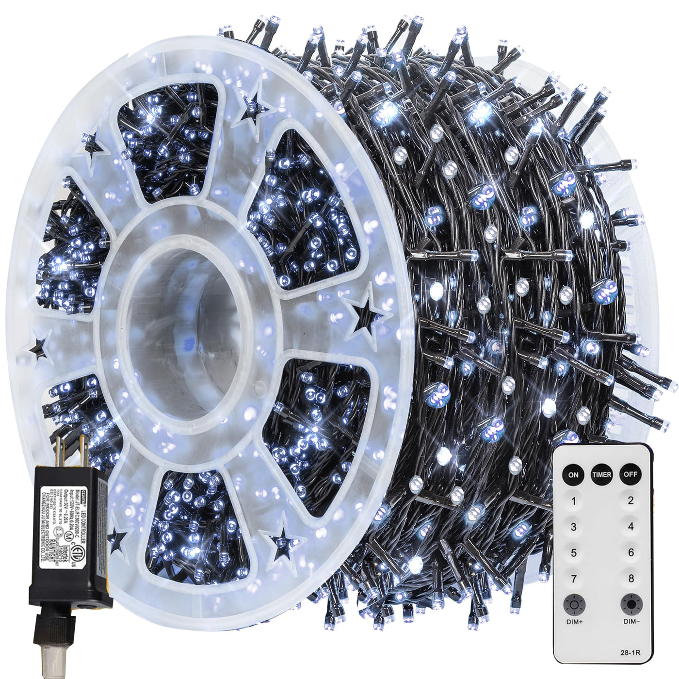 Tw Shine Christmas Lights 600 Led 196Ft Christmas String Lights Plug-In With 8 Modes Timer And Remote Waterproof Outdoor Decorations For Bedroom Wedding Party Yard Tree Decor White