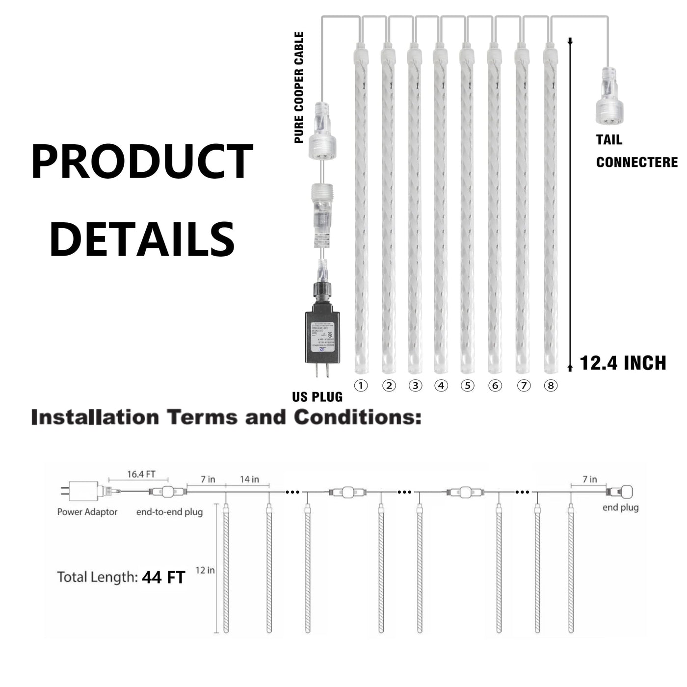 Q: Are these lights waterproof and suitable for outdoor use?A: Yes, the Christmas Meteor Shower Lights are IP65 waterproof, making them resistant to rain, snow, and other adverse weather conditions. They are designed for both outdoor and indoor use.