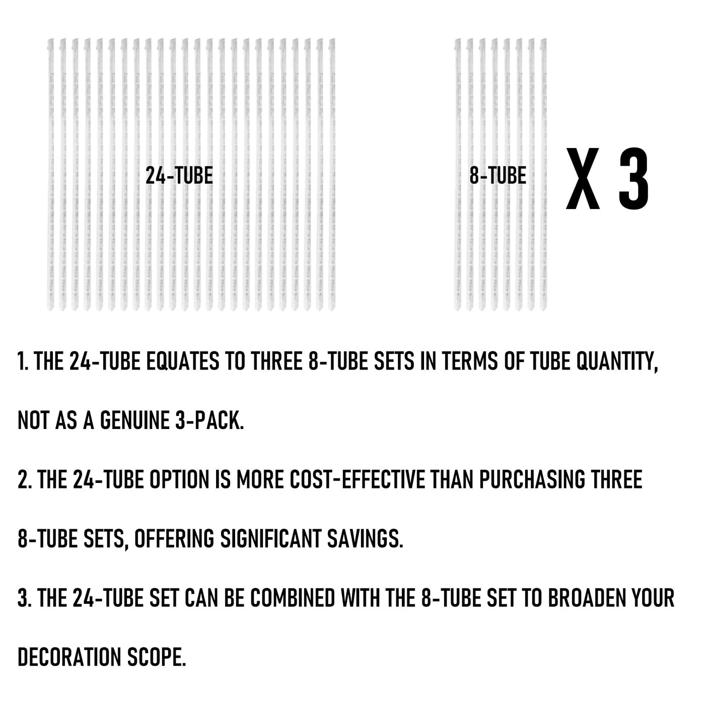 Q: What are the dimensions of the Christmas Meteor Shower Lights?A: The Christmas Meteor Shower Lights consist of 24 tubes, each measuring 30 cm (12 inches) in length. The wire spacing between the tubes is 40 cm (15.7 inches), and the leading cord is 2.1 m (6.9 ft).