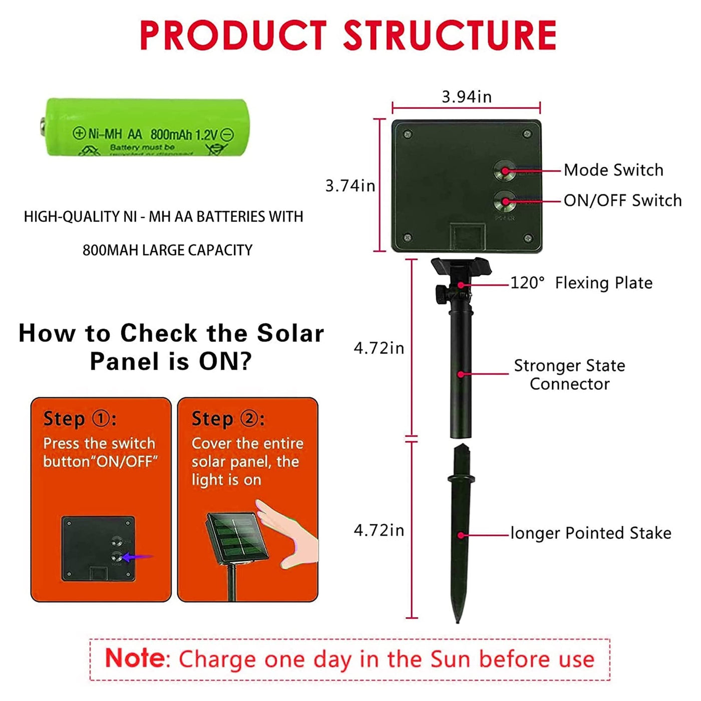 Q: Do I need to replace batteries for the solar string lights?A: No, the TW SHINE solar string lights are powered by solar energy and come with a rechargeable Ni-MH AA battery, eliminating the need for battery replacements.