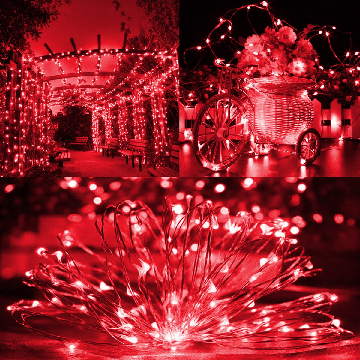 TW SHINE 2 Pack Solar String Lights Outdoor, 39.4 FT 120 LED Solar Powered Waterproof Fairy Lights 8 Modes Copper Wire Lights for Christmas Party Tree Wedding Yard Decorations (Red)