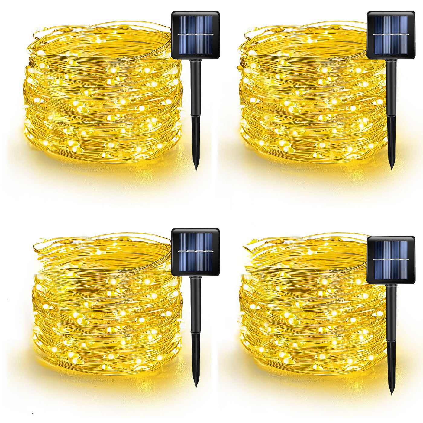 TW SHINE Warm White Solar String Lights Outdoor, 39.4 FT 120 LED Solar Powered Waterproof Fairy Lights 8 Modes Copper Wire Lights for Christmas Party Tree Wedding Yard Decorations, 4 Pack