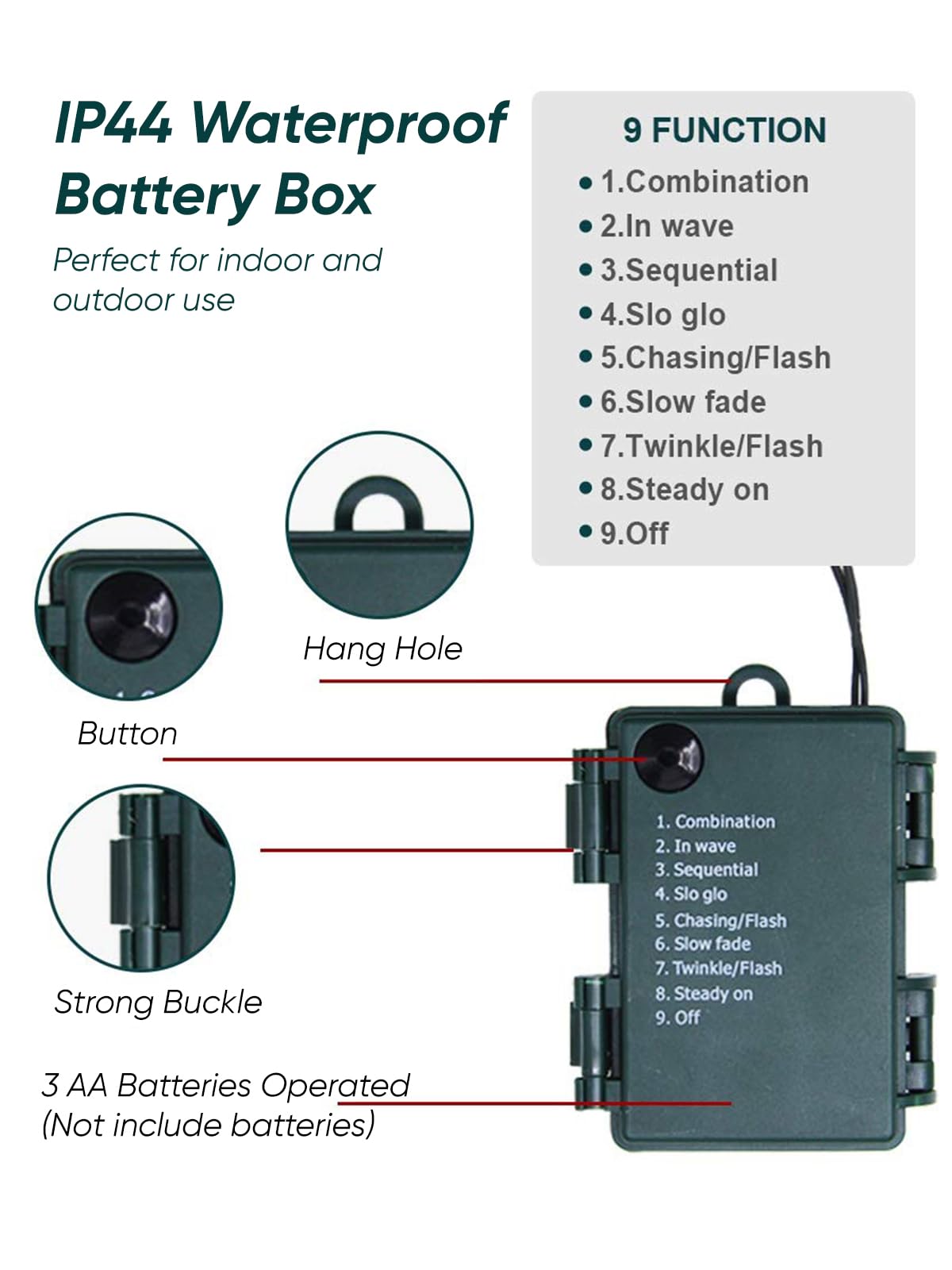 Twinkle Star Decorative Christmas Tree Fairy String Lights Our Super Bright 50 Led 2 Pack Warm White Wide Angle Mini Lights Have 100 Bright Led. Because These Strings Have Non-Removable Led'S This Eliminates Failures From Loose, Broken, Or Removed Bulbs. These Commercial Grade Led Christmas Lights Very Durable, Long Lasting, And Extremely Energy Efficient. Each String Is Full Wave Rectified, Which Eliminates Any Flickering Making These Led Christmas Lights Brighter Than Ordinary Led Mini Lights. The Strand Offers Eight Different Illumination Settings. Giving You Customizable Ambiance. Click Through The Various Options, That Vary In Rhythm And Sequence, To Match Your Mood, Or Maintain An Inviting Glow With The Steady On Feature. Specifications: Light Color: Warm Whiter Led Count: 2*50 Pcs Waterproof: Ip44 Power Source: Battery Powered Intervals Between Bulbs: 3.9 Inches Total Length: 17 Ft Per String Package Including: 2 Pack X 50 Led Mini String Lights