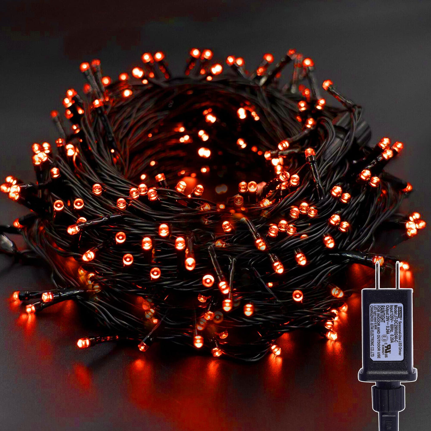 Twinkle Star 33Ft 100 Led Halloween String Lights Orange, Plug In Black Wire Fairy Lights 8 Modes Waterproof Mini Light For Outd
