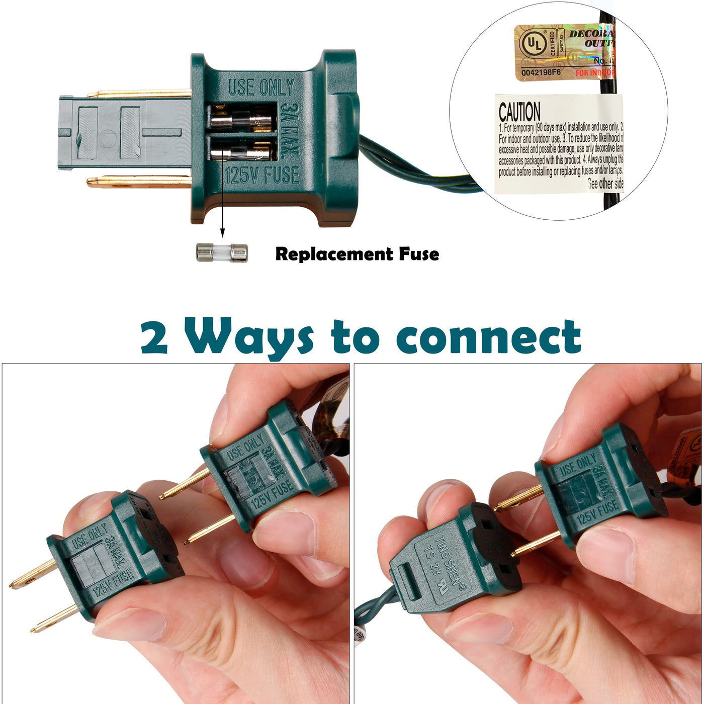 Q: What material are the wires made of?A: The wires of the Christmas lights are made of plastic, providing durability for both indoor and outdoor use.