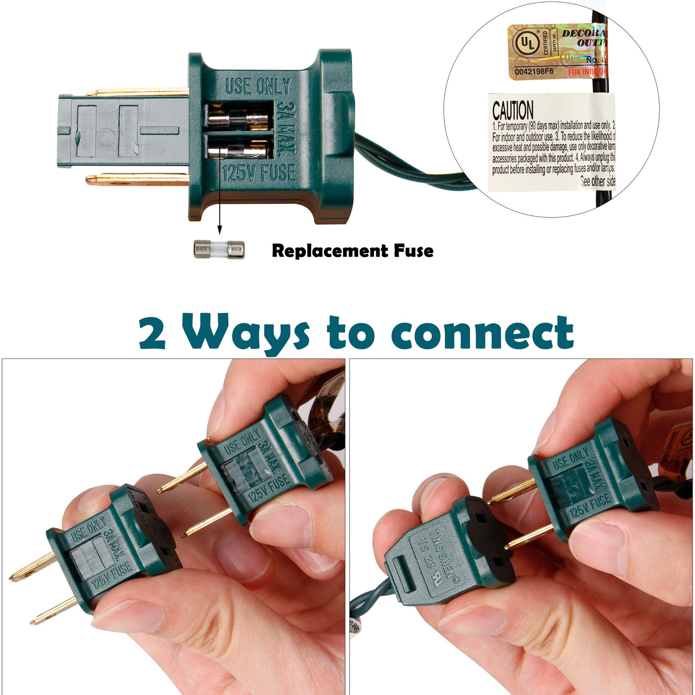 Q: What safety features do these Christmas lights have?A: The lights are equipped with a built-in three-amp fuse for safe use, and they are UL certified to ensure electrical safety.