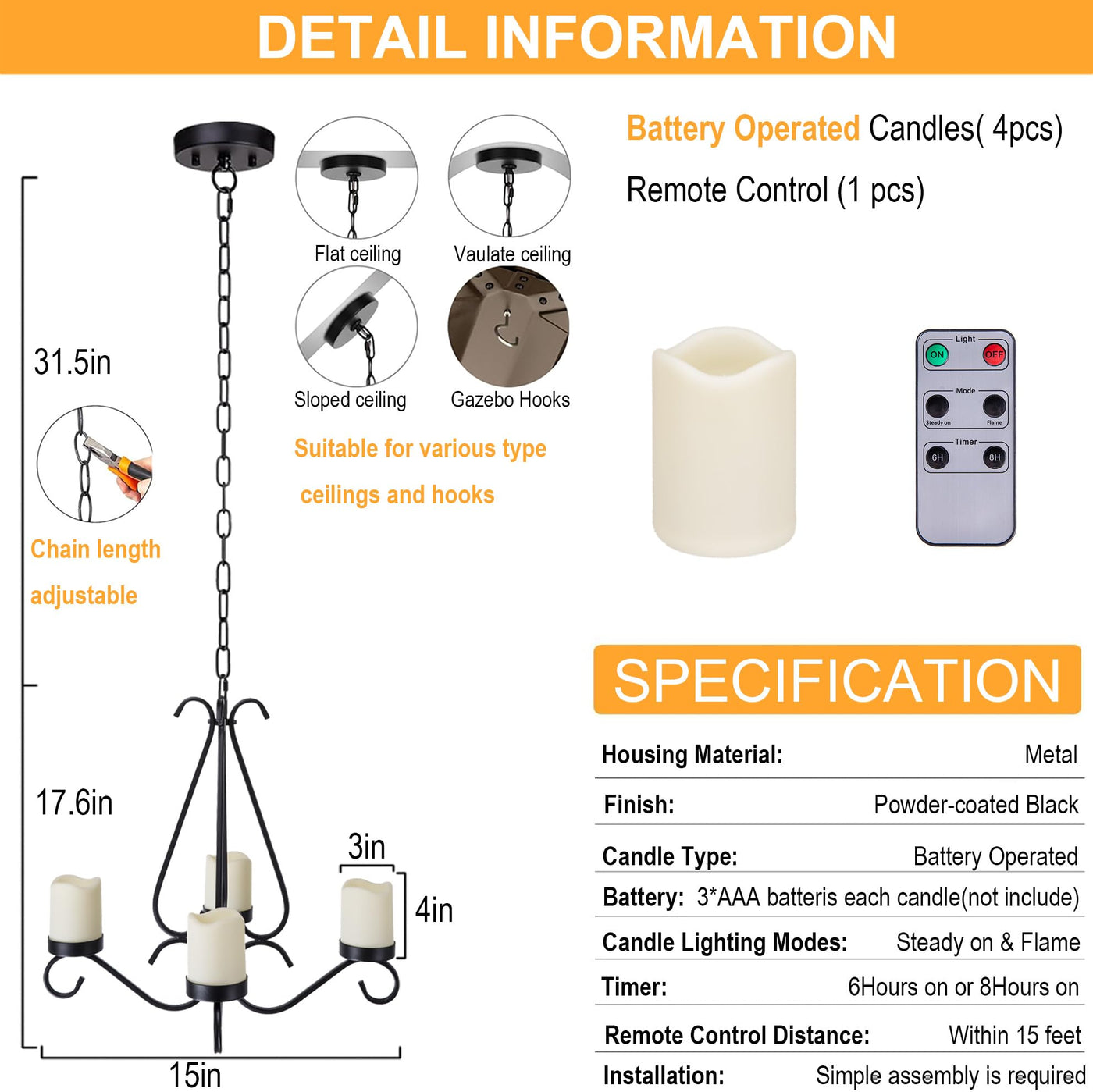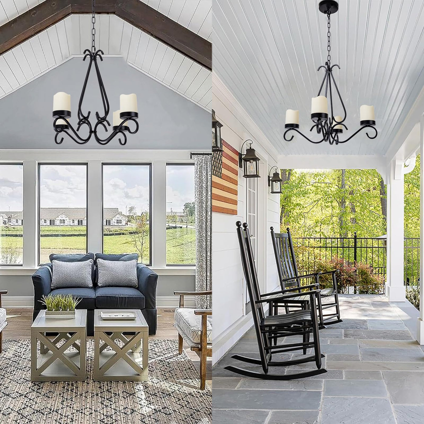 Twinkvilla Battery Operated Chandelier, Outdoor Chandelier With 4Pcs Battery Operated Led Candles, Hanging Candle Chandelier Lig