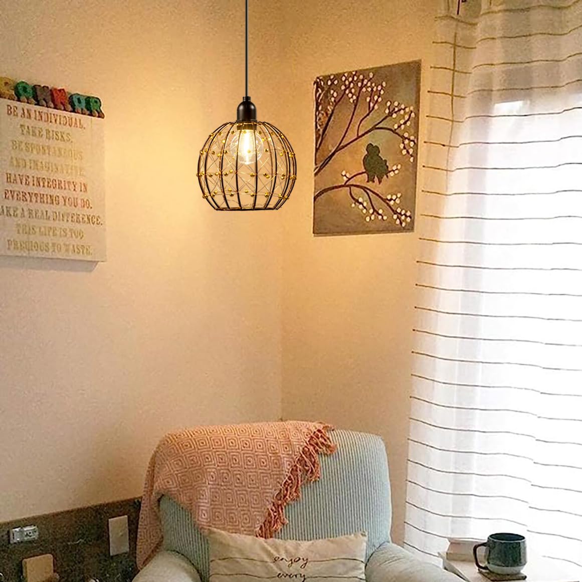 Q: What materials are used in the construction of these pendant lights?A: The TWINKVILLA Hanging Pendant Lanterns are made from a combination of copper, iron, plastic, and LED, ensuring durability and an elegant aesthetic with their beaded copper wire ball shades.