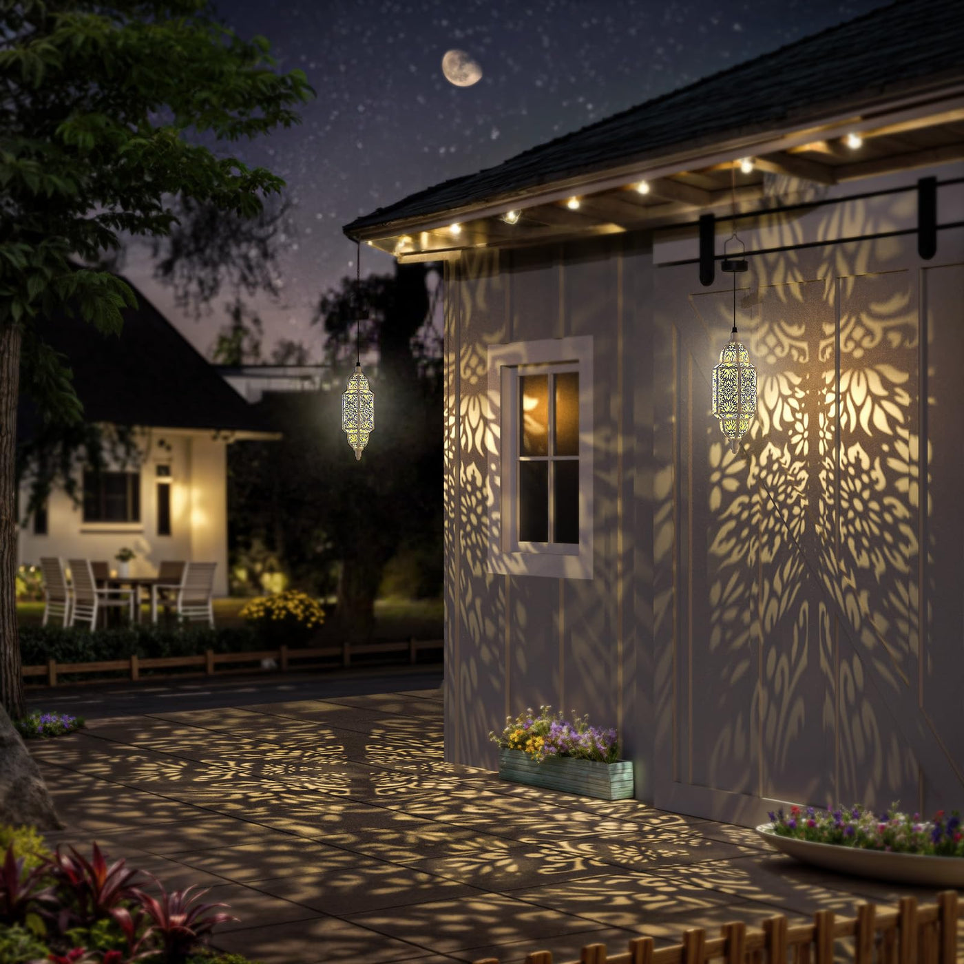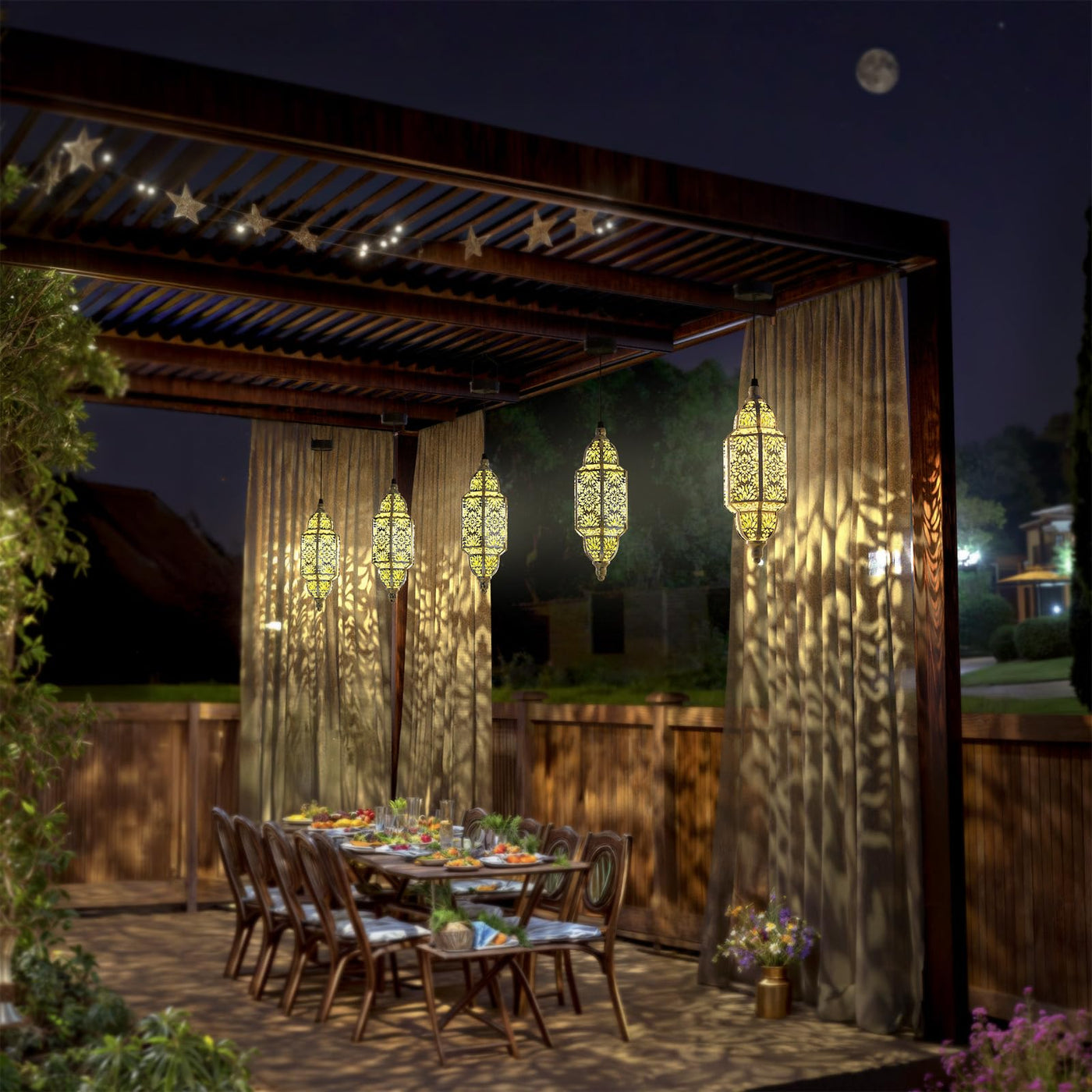 Twinkya 2 Pack Hanging Solar Lights Outdoor Garden Decorative Solar Lantern Waterproof Metal Moroccan Outdoor Decorations For Pa