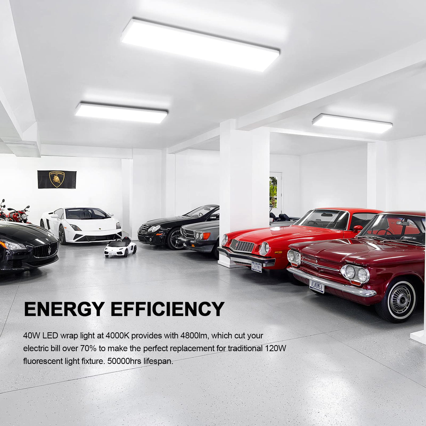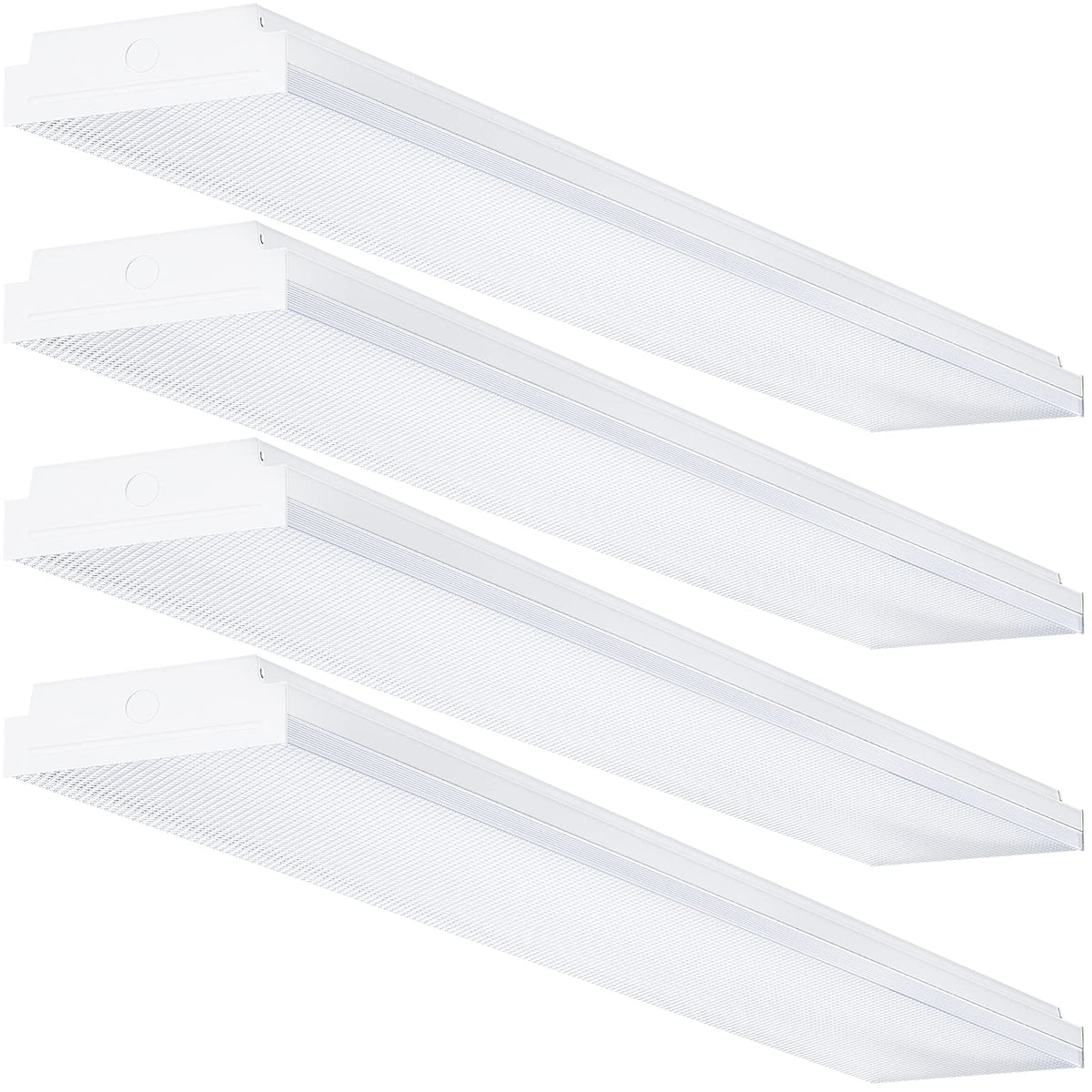 Tycholite 4Ft Led Wraparound Light 40W 4 Foot Led Light Fixture, 4800 Lumens, 4000K Neutral White, 48 Inch Led Shop Lights Flush Mount For Garage, 120W Fluorescent Equivalent, 4 Pack