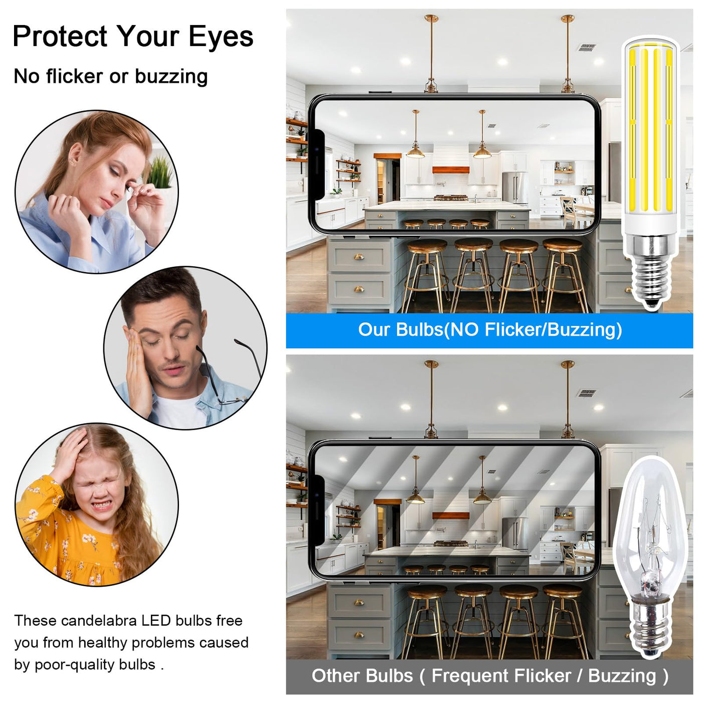 Tzhilan E12 Led Bulb 100W Equivalent,120V Cob E12 C7 Led Light Bulbs For Chandelier Light Candelabra Ceiling Fan, Cool White 600