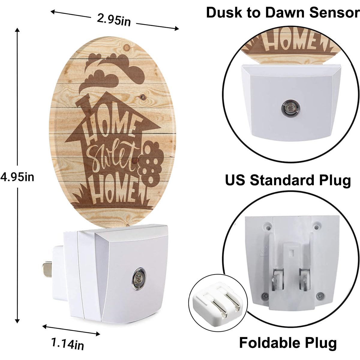 Novelty Night Lights Plug Into Wall Home Sweet Home Lettering On Wood Background Night Lamp Auto On/Off Dim Light Sleep Friendly Cute Housewarming Gifts For Men Womenwill Your Boys And Girls Even Your Mom And Dad Often Bumping Into Things When They Get Up Late At Night Because They Can'T See Furnitures Clearly? If Yes, Our Plug In Night Light Will Perfectly Help You To Solve This Problem. The Night Light Is Designed To Be Plug Into Wall But Only Take Up One Outlet, So You Don'T Meed To Take It Away Form Outlet When You Want To Charge Your Phone Etc. The Plug-In Night Light Has Dusk To Dawn Sensor, You Only Need To Plug Nightlight Into Outlet And It Will Automatically Turn On When Dark And Off In The Morning.For Safety, Please Use The Led Night Light Indoor Instead Of Outdoor.
