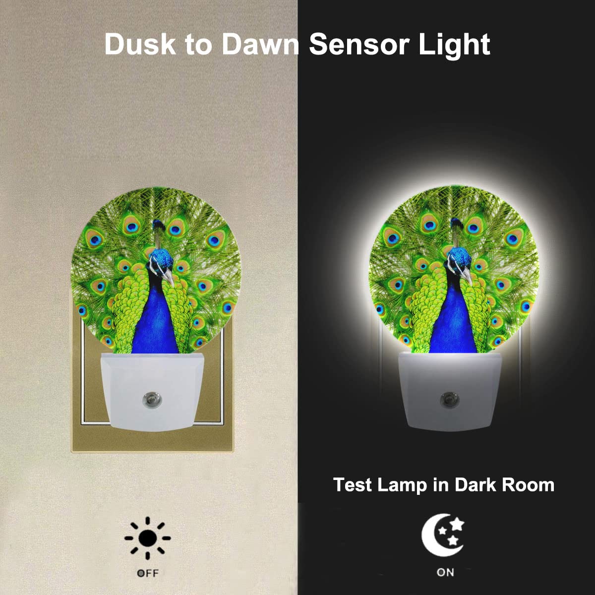 Uanvaha Peacock Open Tail Night Light Peacock Feathers Green Night Lights Plug Into Wall 0.5W Led Lights Auto On/Off For Hallway