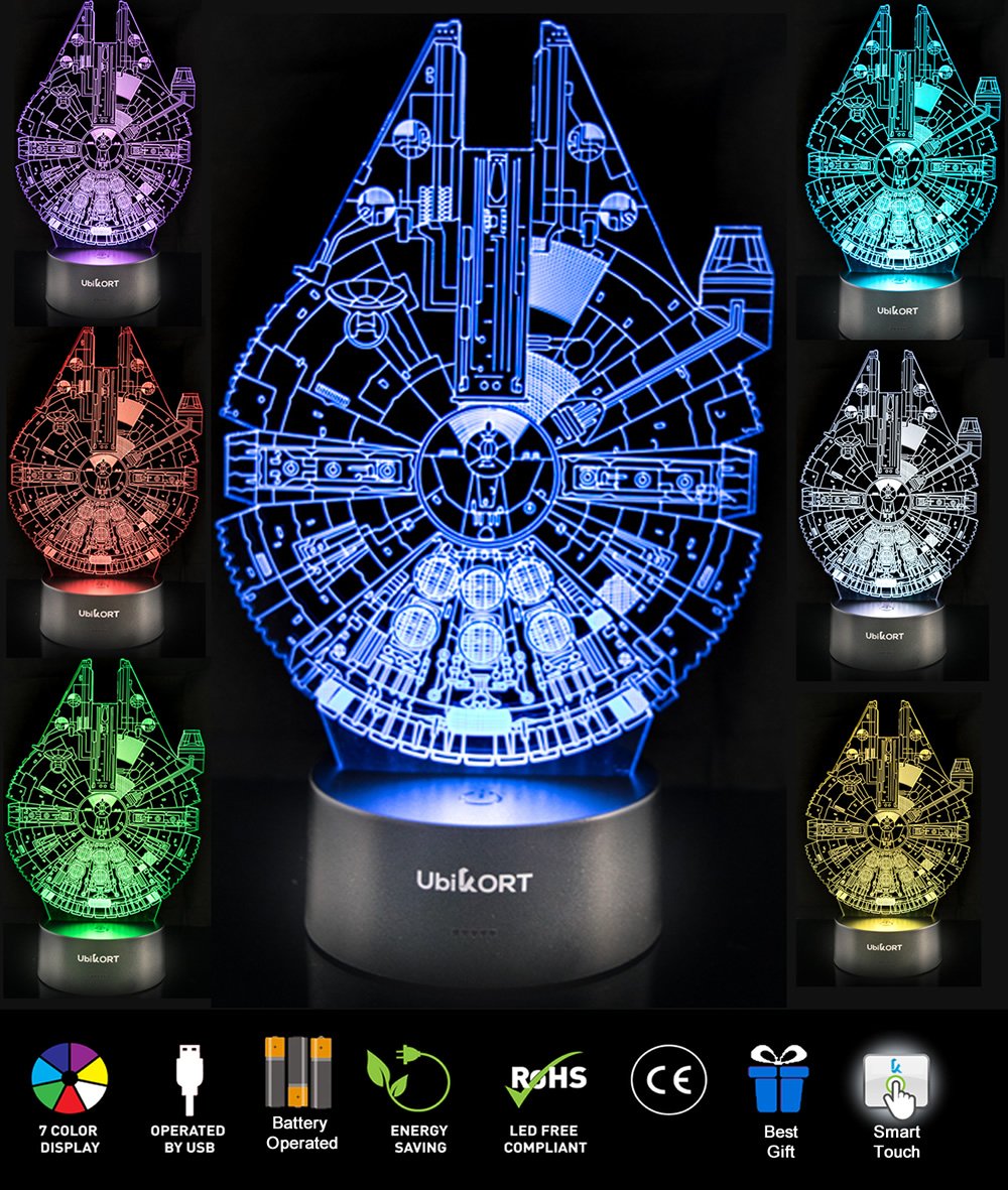 Ubikort Star Wars Millennium Falcon 3D Lamp - Star Wars Gifts For Men Or Kids Birthday Decor Fans [Upgrade Version]