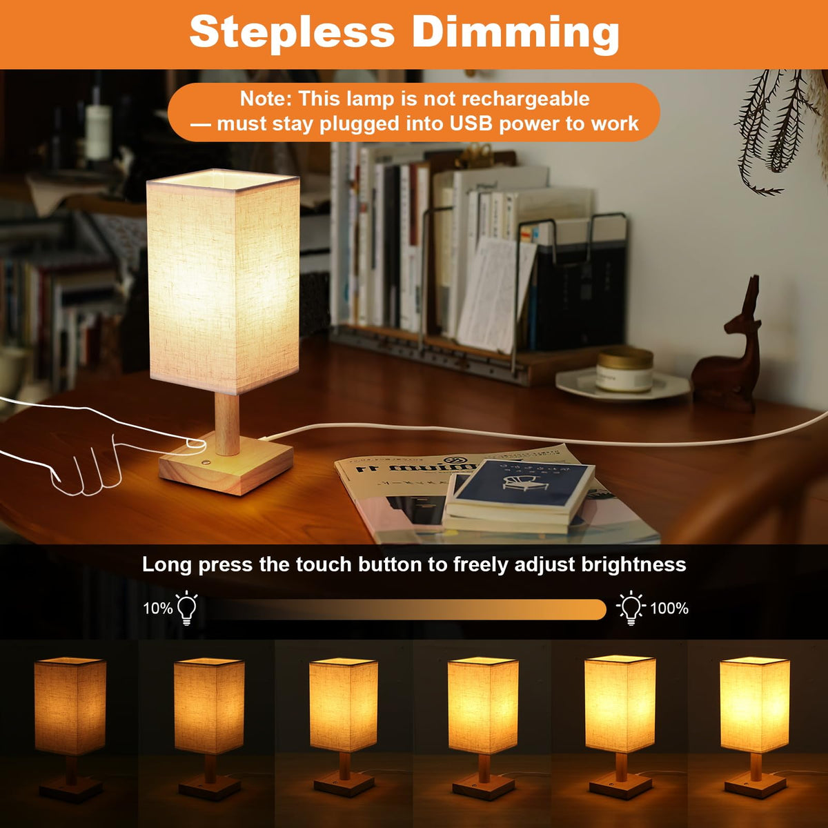 USB-Powered for Continuous Use: This versatile corded touch square table lamp is designed for steady and uninterrupted use. Simply plug it in, and enjoy consistent lighting whenever you need it. Perfect for indoor spaces, this lamp brings warmth and comfort with ease. Simple, Elegant Touch Control for Your Comfort: Experience the convenience with our touch night stand lamp. A simple tap to turn on/off, and a long press to smoothly adjust the brightness to your perfect level. Your favorite lighting level is remembered for next time. No more fumbling with switches-just the gentle touch of your finger. Soft, Warm Light to Create a Cozy Ambiance: With a color temperature of 2700K and a 5W bulb, this corded bedside square lamp emits a soft, warm glow perfect for creating a relaxing atmosphere. Ideal for your bedroom, living room, or even as a nightstand lamp, its designed to offer comfort and tranquility. Natural Wooden Base for a Touch of Nature: The small square lamp features a natural wood base that adds a rustic, earthy charm to your space. Perfect for modern, minimalist, or cozy interior styles, this bedroom lamp enhances any decor with its timeless appeal. Perfect Gift for Any Occasion: Thoughtfully designed and beautifully crafted, this touch square lamp for nightstand makes the ideal gift for birthdays, anniversaries, or housewarmings. With its simple yet functional design, its sure to delight anyone who receives it. Energy-Efficient 5W Bulb for Optimal Performance: Equipped with a 5W bulb, this lamp is designed to provide soft, warm light while being energy-efficient. Please note, only compatible bulbs are recommended-ensuring consistent brightness and longevity.