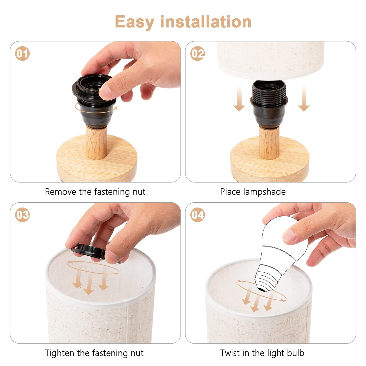 Why choose UCHENTONG Small Table Lamp? Using the best quality components, each and every one of Table Lamp is very durable. The Cord, Socket and Plug of Uchenton small bedside lamp for bedroom are UL listed. By giving products the listed, you dont have to worry about the material problem. This Nightstand lamp comes with ON/OFF switch control, easy to install and use. Minimalist Design Decorates Your Room Effortlessly. The night light lamp is well made and elegant in design, making your surrounding more modern and stylish looking. Your best choice for bedrooms, living rooms, baby rooms, offices, coffee tables, college dorms, cafes, and bookcases in your library or den. Delicate and bright light: Its 400 Lumen is bright enough to light up an entire bedroom when all other lights are off. It is just the right amount of light for reading, working and studying. This night stand light lamp is also a great gift for your family. A19 E26 LED Bulb Included: 2700K 400 Lumens soft warm white light, with no flicker or no dazzle on eyes, very quiet for your sleeping time or joying time; 4W LED bulb equivalent to 40W incandescent bulb, helps you save at least 80% on electricity bill. Parameters: Input Voltage: 100~240 VAC / 50~60 Hz Led Power: 4 watts Connector Type: E26 Lampshade Material: Linen Waterproof Grade: IP44 Size: D 4.8 * H 9.5 inches Working Life: 50000 hours Working Temperature: -20~60?