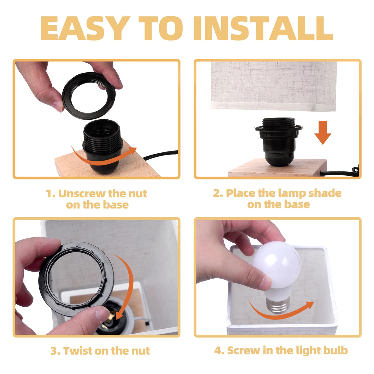 Why choose UCHENTONG Small Table Lamp? Using the best quality components, each and every one of Table Lamp is very durable. The Cord, Socket and Plug of Uchenton small bedside lamp for bedroom are UL listed. By giving products the listed, you don’t have to worry about the material problem. This Nightstand lamp comes with ON/OFF switch control, easy to install and use.