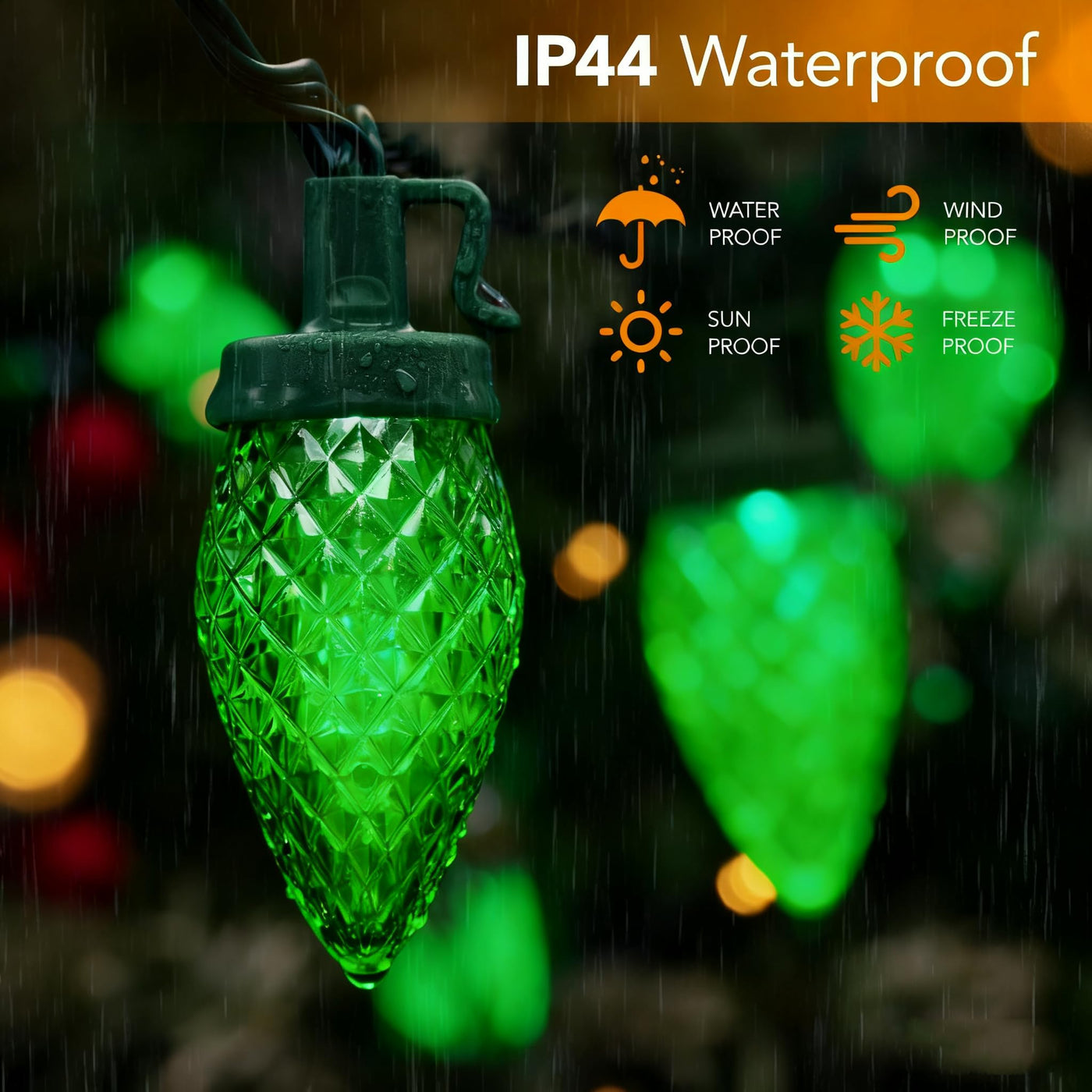 1. Commercial-Grade Durability: Thick Green Wire & Long-Lasting Brightness Tired Of Replacing Flimsy C9 Christmas Lights Every Holiday Season? Unlike Other C9 Led Lights With Weak Ultra-Thin Wires (They Break Easily On Eaves/Trees And Dim Fast) Our Lights Use well-made Weather-Resistant Green Wire. The Heavy-Duty Construction Resists Breaking And Overheating-Even After Hours Of Nonstop Use-So They Stay Bright And Reliable For Years. We Also Include 2 Spare Bulbs + 2 Spare Fuses (Seldom Needed But Handy Just In Case) To Save You From Last-Minute Hassle. 2. 8 Lighting Modes&Memory Function&well-made Replaceable Bulbs For Christmas String Lights: Switch 8 Modes (Combination Waves Sequential Slow Glow Chasing/Flash Slow Fade Twinkle/Flash Steady On) To Match Any Mood-Control All Via The Adapters Button. The Memory Function Lets You Skip Reselecting Your Favorite Mode Every Time You Power On. Bulbs Are Removable/Replaceable: If One Burns Out Others Stay Lit-No More Half-Lit Strands Ruining Decor! We Include 4 Spare Bulbs For Quick Fixes. Theyre Bright Enough To Light Your Yard Patio Or Roof Adding Perfect Festive Glow. 3. End-To-End Connectable: Cover Large Areas Freely No More Struggling With Too-Small Light Sets! Each C9 Christmas String Light Has An End-To-End Connector Supporting Connecting Up To 44 Sets Total. Mix And Match To Cover Large Areas Like Entire Roofs Sprawling Backyards Or Commercial Spaces-Customize Based On Your Needs! The Green Wire Blends Seamlessly With Natural Backdrops (Like Tree Branches) So You Can Hang Them Along Roofs Across Porches/Fences Or Wrap Around Trees For A Showstopping Holiday Display. 4. Ip44 Waterproof: Weatherproof For Year-Round Use Dont Let Rain Or Snow Ruin Your Decor! Our Outdoor Led Christmas Lights Are Crafted From well-made Weatherproof Materials That Withstand Heavy Rain Intense Sunlight And Cold Winter Temperatures-Leave Them Up Year-Round Without Worry. The Ip44 Waterproof Rating Lets You Use These Lights Indoors Or Outdoors So Rainy Days Wont Stop Your Festive Setup. Important Note: The Plug Is Not Waterproof-Keep It Away From Water To Avoid Damage. 5. Easy To Install & Versatile: Instant Festive Ambiance Diy Decorating Has Never Been Easier! Just Unroll The Christmas String Lights And Mount Them Wherever You Want-No Tools Or Professional Sreduces Needed. Enjoy The Fun Of Sprucing Up Your Space And Let These Lights Create A Warm Memorable Atmosphere Guests Will Love. Theyre Not Just For Holidays: Use Them For Daily Decor Christmas Parties Outdoor Weddings Summer Barbecues Or Even Neighborhood Block Parties.