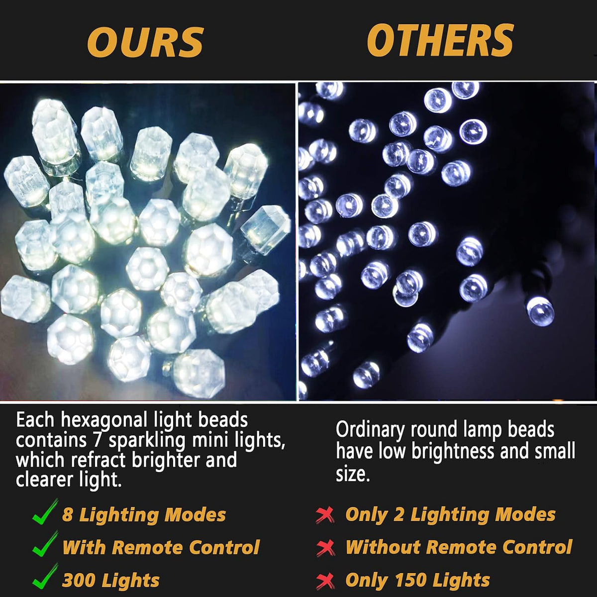 Ucutely Solar Christmas Lights Outdoor 115 Ft 300 LED Waterproof White Model UZ004
