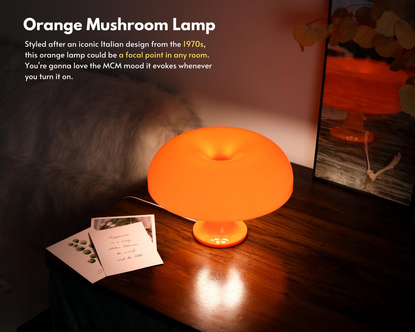 UEHICT Orange Mushroom Lamp with 3 Lighting Modes, Dimmable 70s Retro Mid Century Modern Lamp for Bedroom, Funky Unique Lamp for Room Decor Aesthetic, Hippie Decor Donut Lamp, Vintage Decor Collection (Orange)