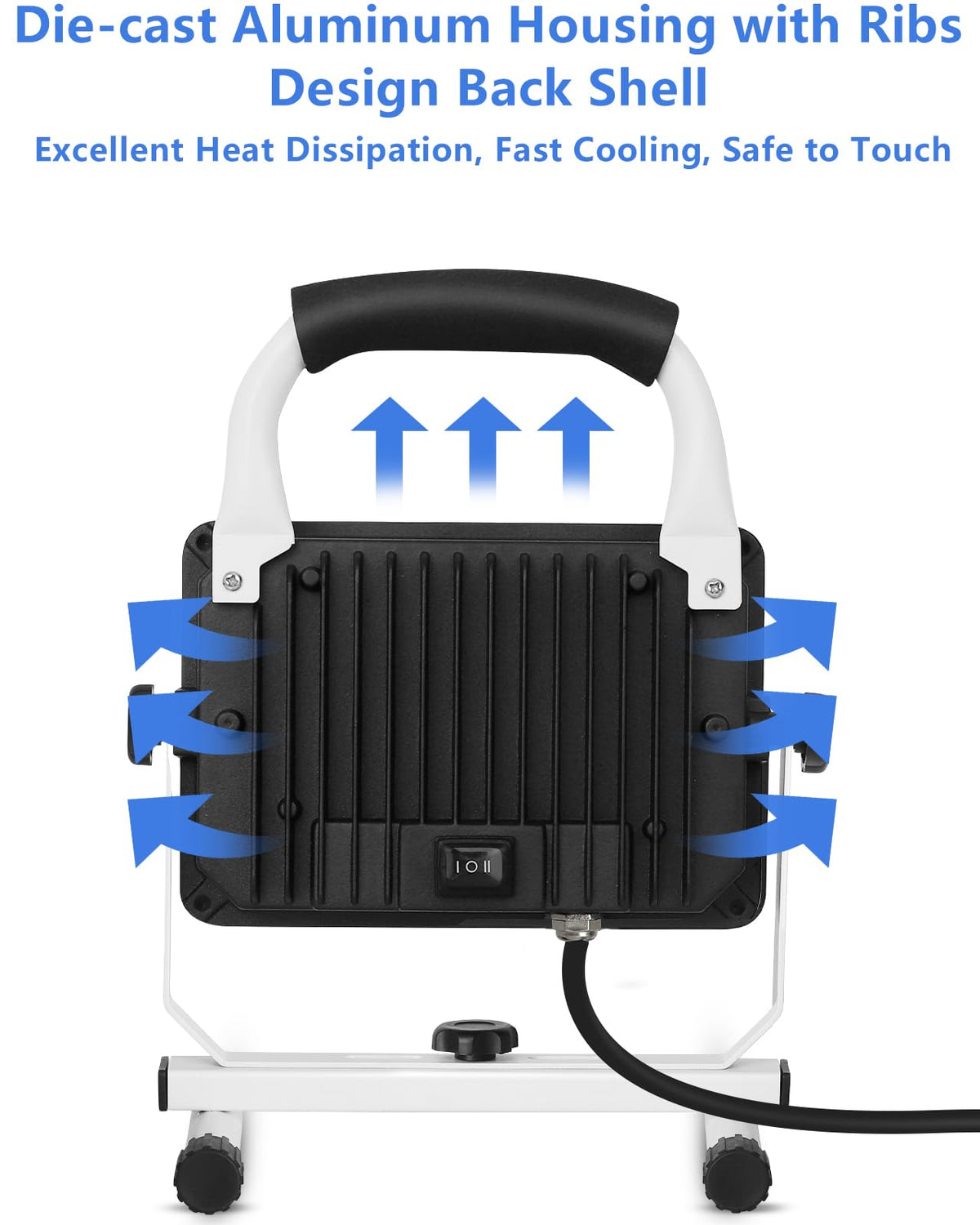 Switchable Brightness 42 Lamp Beads Are Powerful Led Light Source, Through The Switch Button Can Get 4000Lm / 2000Lm Two Different Brightness, Equivalent To Have Two Working Lights. Upgrade Waterproof Switch Design Independent Waterproof Button Design, Can Effectively Dustproof And Waterproof, Improve The Safety Of Use. Compact And Portable Work Light Light Weight, Small Size, Easy To Carry, Adjustable Rotary Button, Convenient For You To Work In Cramped Space Freely. Efficient Heat Dissipation And Durability The Work Light Adopts Finned Heat Dissipation Design, Using The Shape And Arrangement Of The Fins To Increase The Heat Dissipation Area And Improve The Heat Dissipation Efficiency. Meanwhile, The Material Of Die-Casting Aluminum Can Extend The Service Life Of The Floodlight. Widely Used Suitable For Indoor And Outdoor Lighting In Workshops, Warehouses, Gardens, Construction Sites, Etc. It Is A Good Helper For Your Work.
