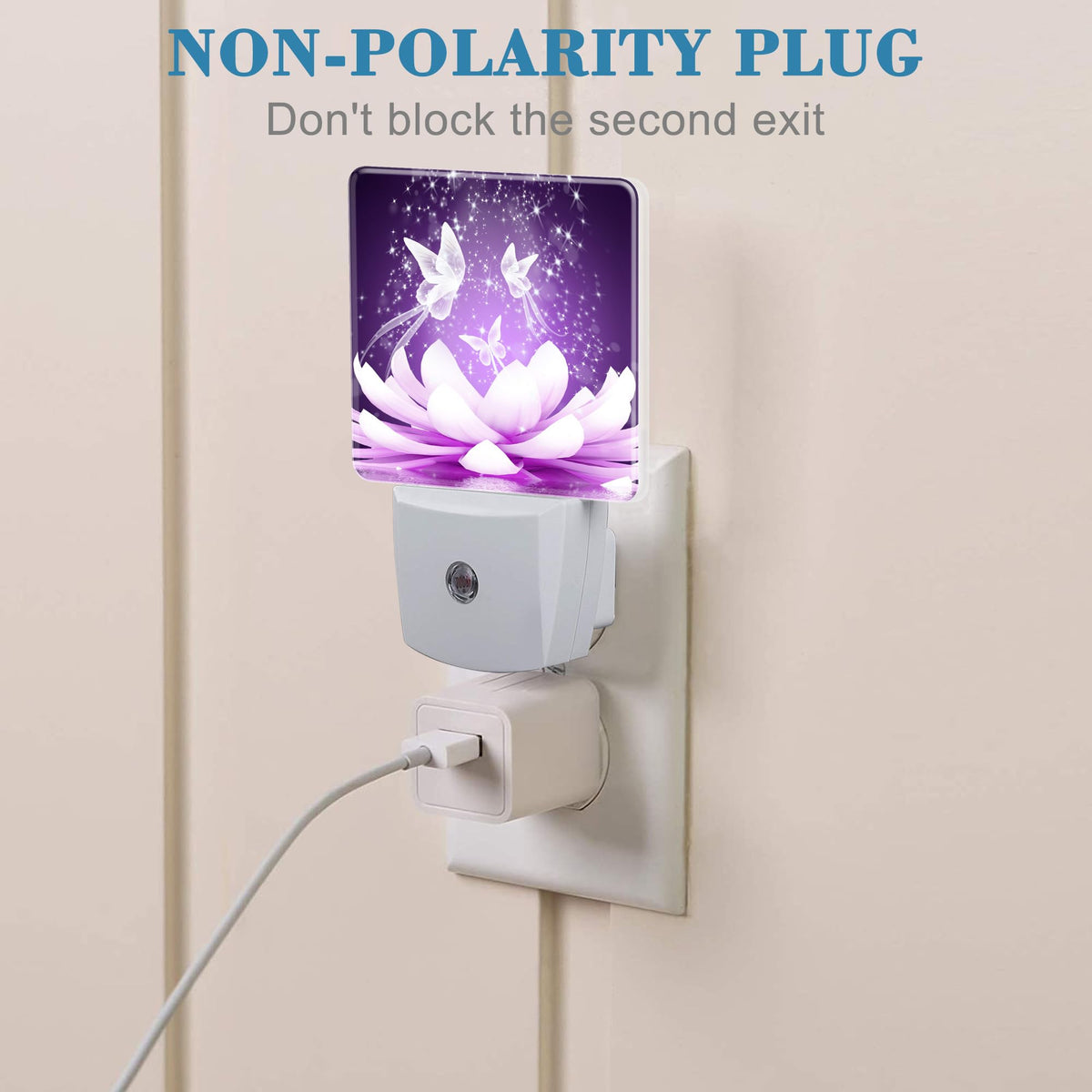 Uiaoiais Beautiful Lotus Flower And Butterfly Night Light Plug Into Wall With Dusk To Dawn Sensor Cute Nightlight For Kid Girls