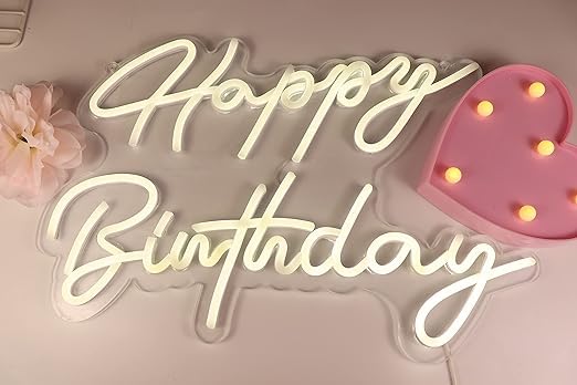 Ulalaza Led Neon Sign Night Light - Happy Birthday Wall Decor For Parties & Weddings, 16.5"X9.1"