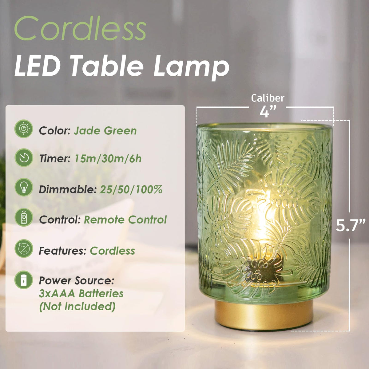 Ularoom Battery Operated Small Cordless Table Lamps With Remote Control,Glass Dimmable Brightness Wireless Lamp With Timer,Batte