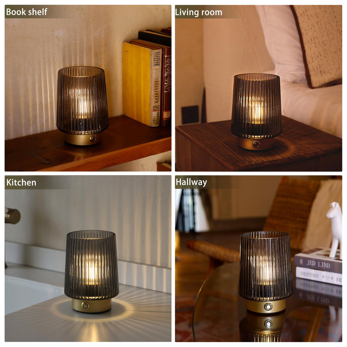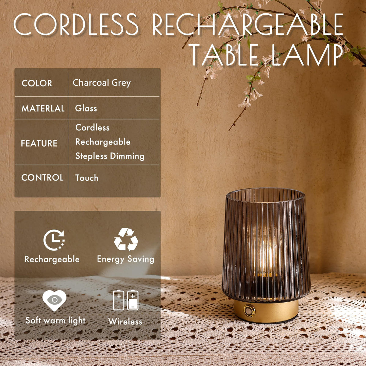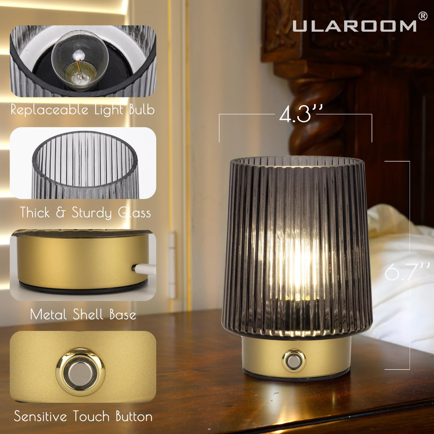 Ularoom Cordless Lamp Rechargeable Battery Operated Lamp, Glass Small Table Lamp - Portable Dimmable Brightness Touch Wireless B