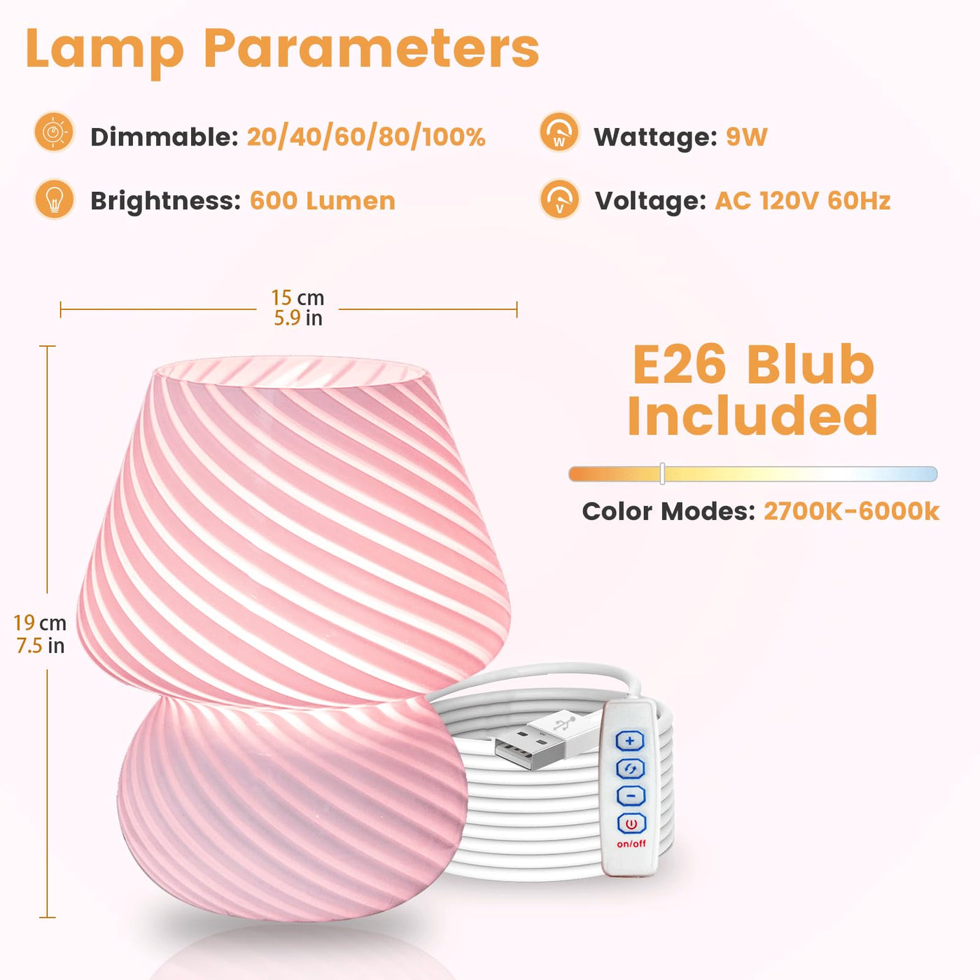 Ularoom Usb Plug-In Mushroom Lamp Small Bedside Table Lamp With 3 Temperature Led Bulb, Free Dimming Nights Light For Bedroom/Li