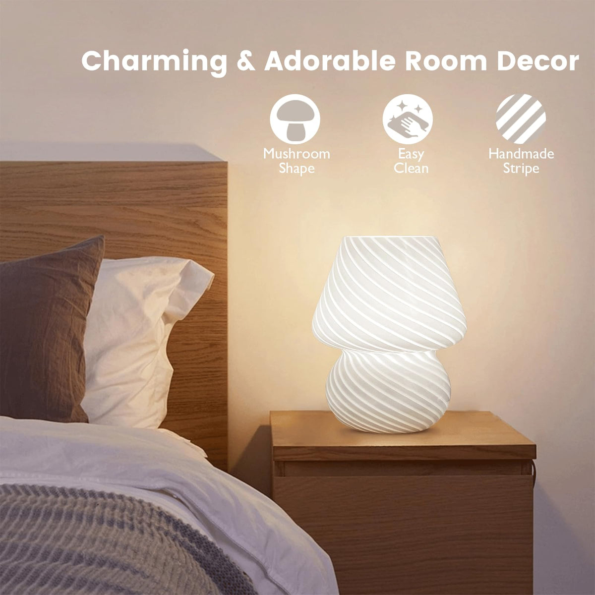 Q: Is the ULAROOM Mushroom Lamp safe for children's rooms?A: Yes, the ULAROOM Mushroom Lamp is made from high-quality ceramic glass material that is non-toxic and harmless, making it a safe choice for children's rooms. Its gentle lighting and user-friendly design make it perfect as a nursery lamp.