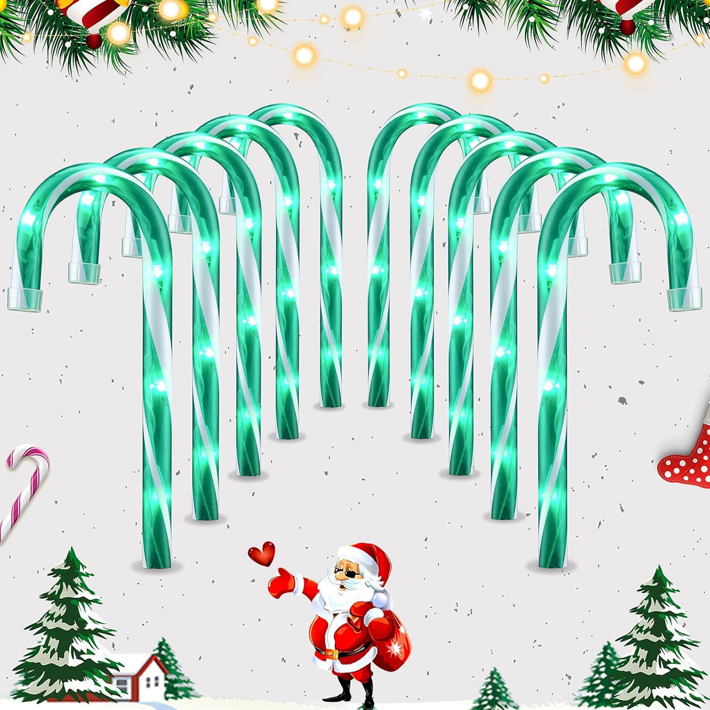 Ultimate Unicorn 10'' Christmas Candy Cane Lights (10Pcs) For Landscape Decoration, Outdoor Pathway Makers Lights, Candy Cane Wa
