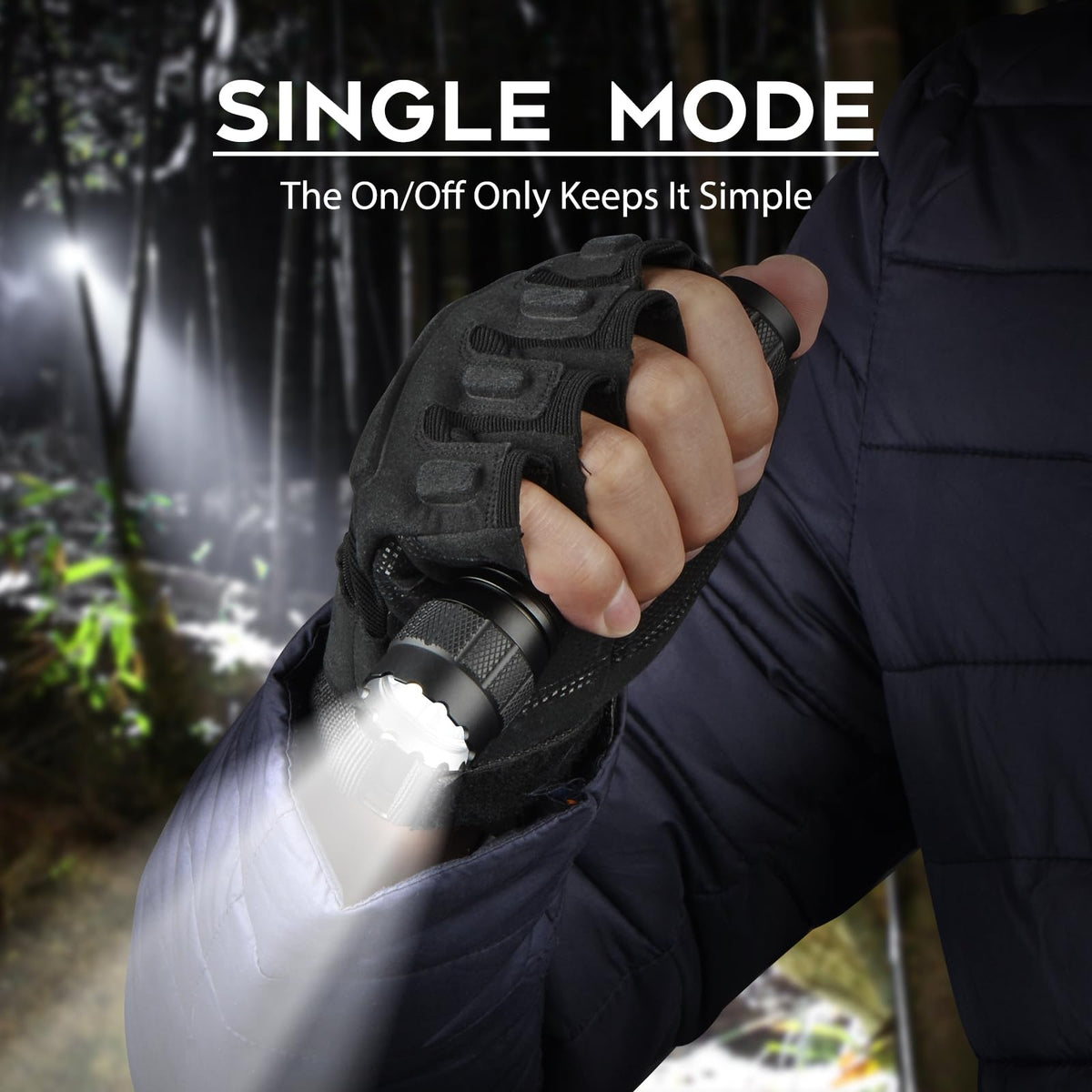 Key Features: 1) Matte black appearance, sturdy die-cast unibody construction ensuring that heat is delivered evenly and rapidly with anti-scratch knurling finish. 2) The perfect combination, the set contains complete accessories. 3) Unique flashlight holder that works with many different styles of flashlight, great features, easy to use. 4) Compact but also comfortable to hold, easy to carry with you as a backup and small enough to fit well in your hand, pocket, handbag or tool box. 5) Widely used in hunting, outdoor, camping, hiking, cycling and other activities. Specifications: * Color: Matte black * Brightness: 1200 lumen maximum brightness * Meterial: Aluminium alloy * Switch Type: Tail cap switch * 1 Mode: High * Flashlight Size: 5.2*1.26*1.02 inches What's Included: 1 x Bright Tactical LED Flashlight 1 x Flashlight Holder 2 x UFB22 1 x Charger 1 x User Manual 1 x Gift Box Please Note: * It is normal that the flashlight will get hot after working for a period of time. Please rest assured to use it.