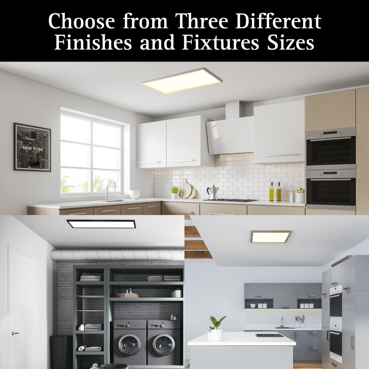 The UltraLux LED light fixture features a modern, sleek design crafted from well-made aluminum, ensuring durability and a refined aesthetic. With a low-profile design, it fits seamlessly in any setting, from kitchens and bathrooms to garages and offices. The fixture is CCT switchable, allowing you to select between 3000K, 4000K, and 5000K color temperatures, providing flexibility to achieve the desired ambiance. Its TRIAC dimmable functionality allows for easy brightness adjustments, making it ideal for any occasion.