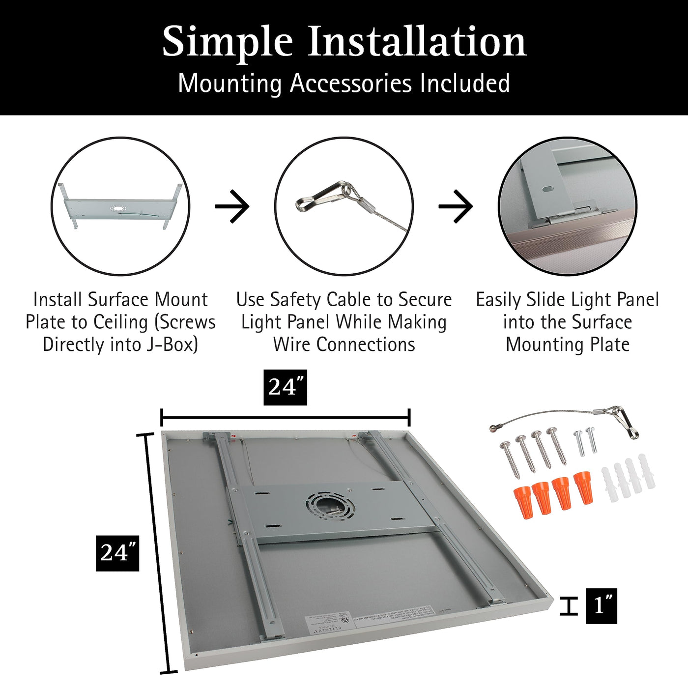 Ultralux 2x2 ft Surface Mount Ceiling Light Panel, TRIAC Dimmable, 3CCT Adjustable, Matte White, 1 Pack