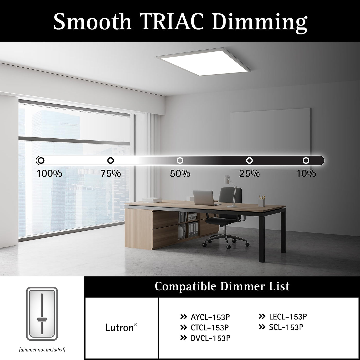 Q: Can I dim the light from the UltraLux panel?A: Yes, the UltraLux ceiling light is TRIAC dimmable, allowing you to adjust the brightness to suit your mood or activity.