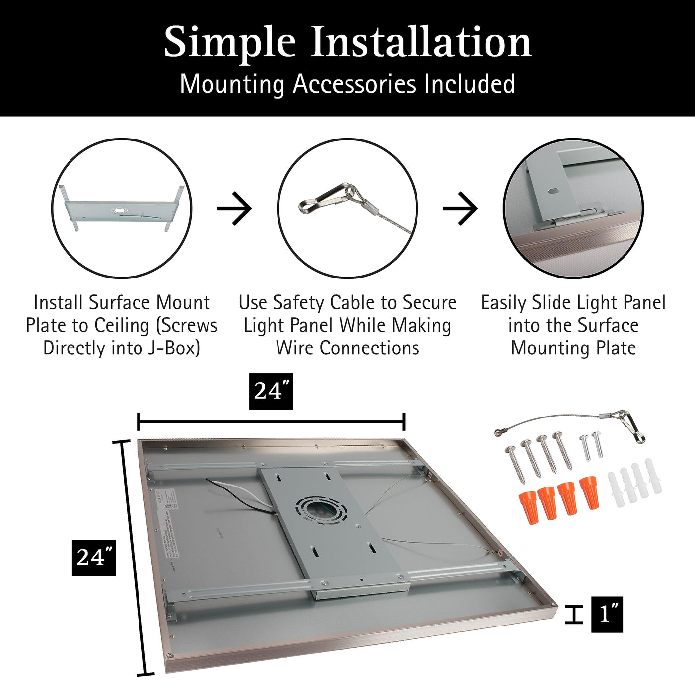 Ultralux Surface Mount Ceiling Light Panel, 2x2 ft, TRIAC Dimmable, 3CCT Adjustable, Brushed Nickel, 2 Pack, Model 799947600434