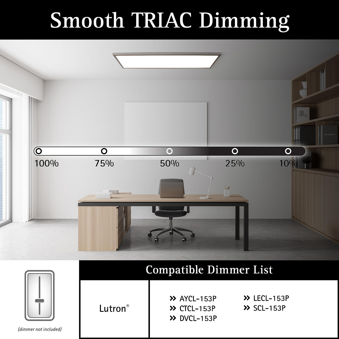 Q: Is the Ultralux Ceiling Light Panel dimmable?A: Yes, the Ultralux Ceiling Light Panel is TRIAC dimmable, allowing you to adjust the brightness according to your preference and mood.