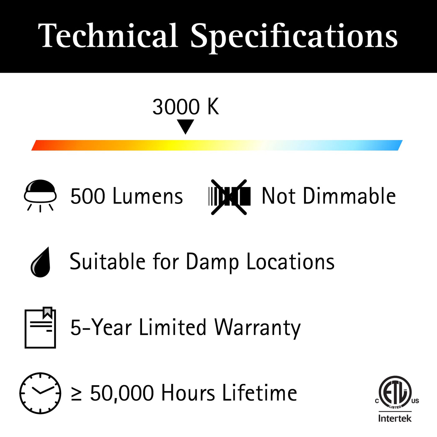 Packed with Features: Integrated LED with a Color Rendering Index (CRI) over 80, suitable for damp locations.