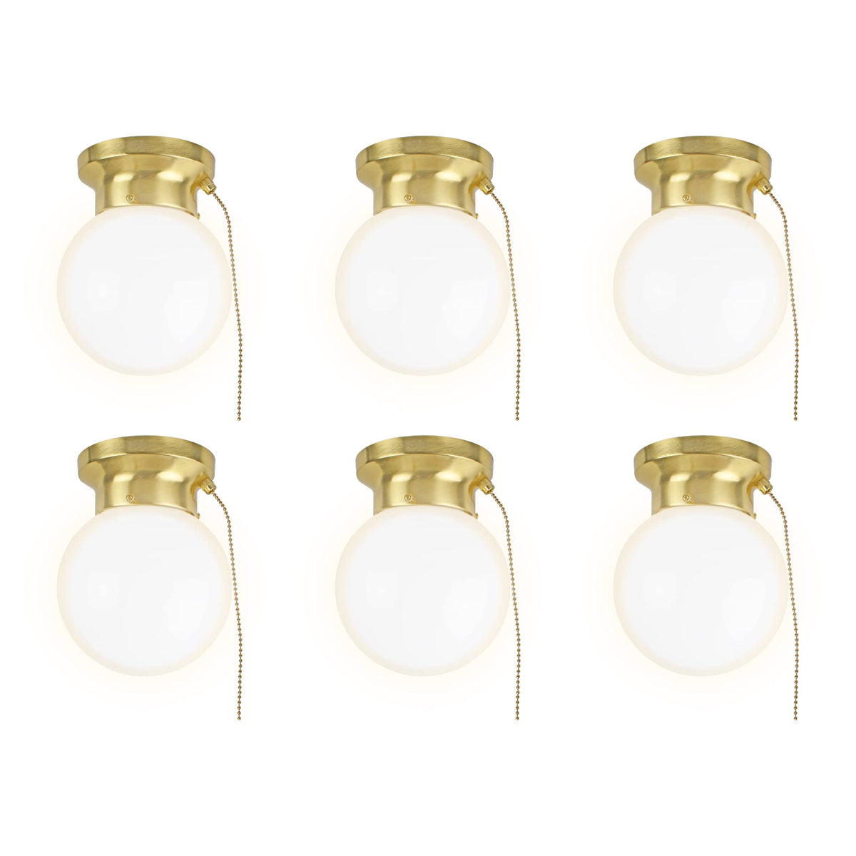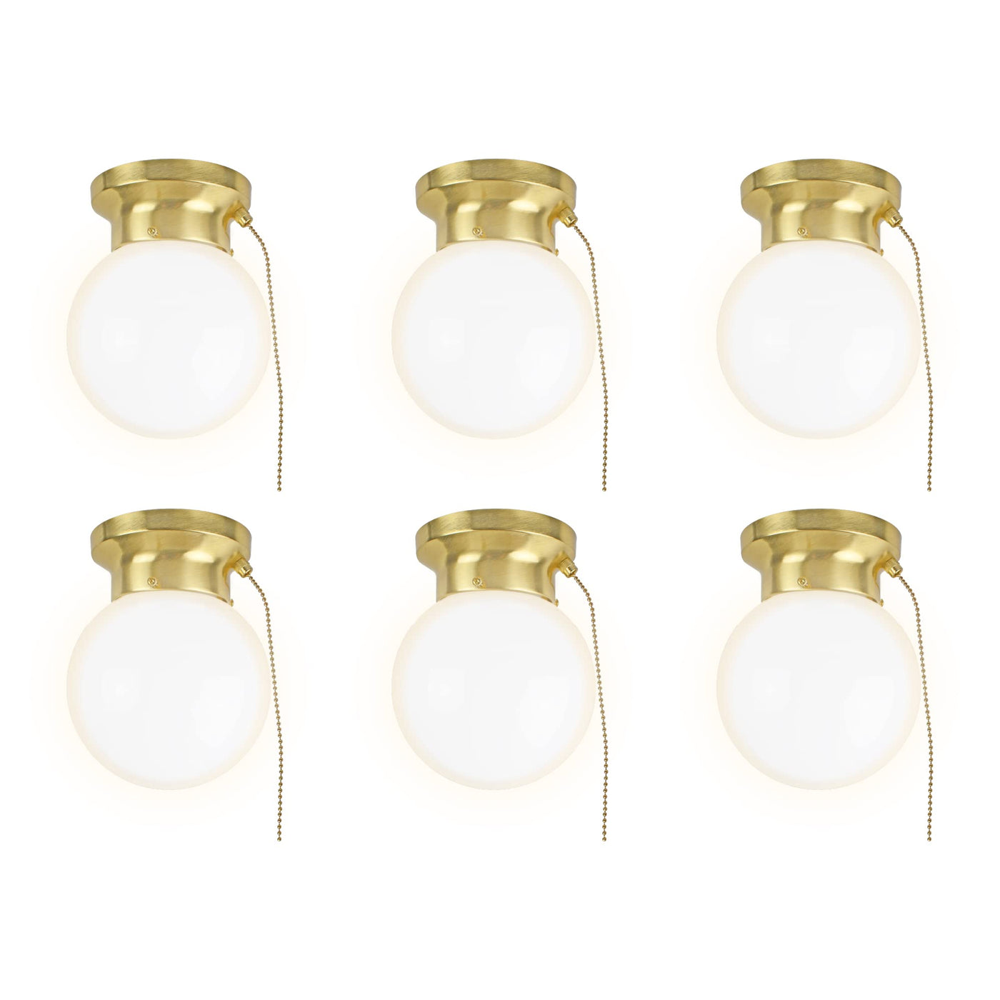 Ultralux Utility LED Glass Flush Mount Light Fixture - 500 Lumens, 3000K, Brushed Gold, 6-Pack