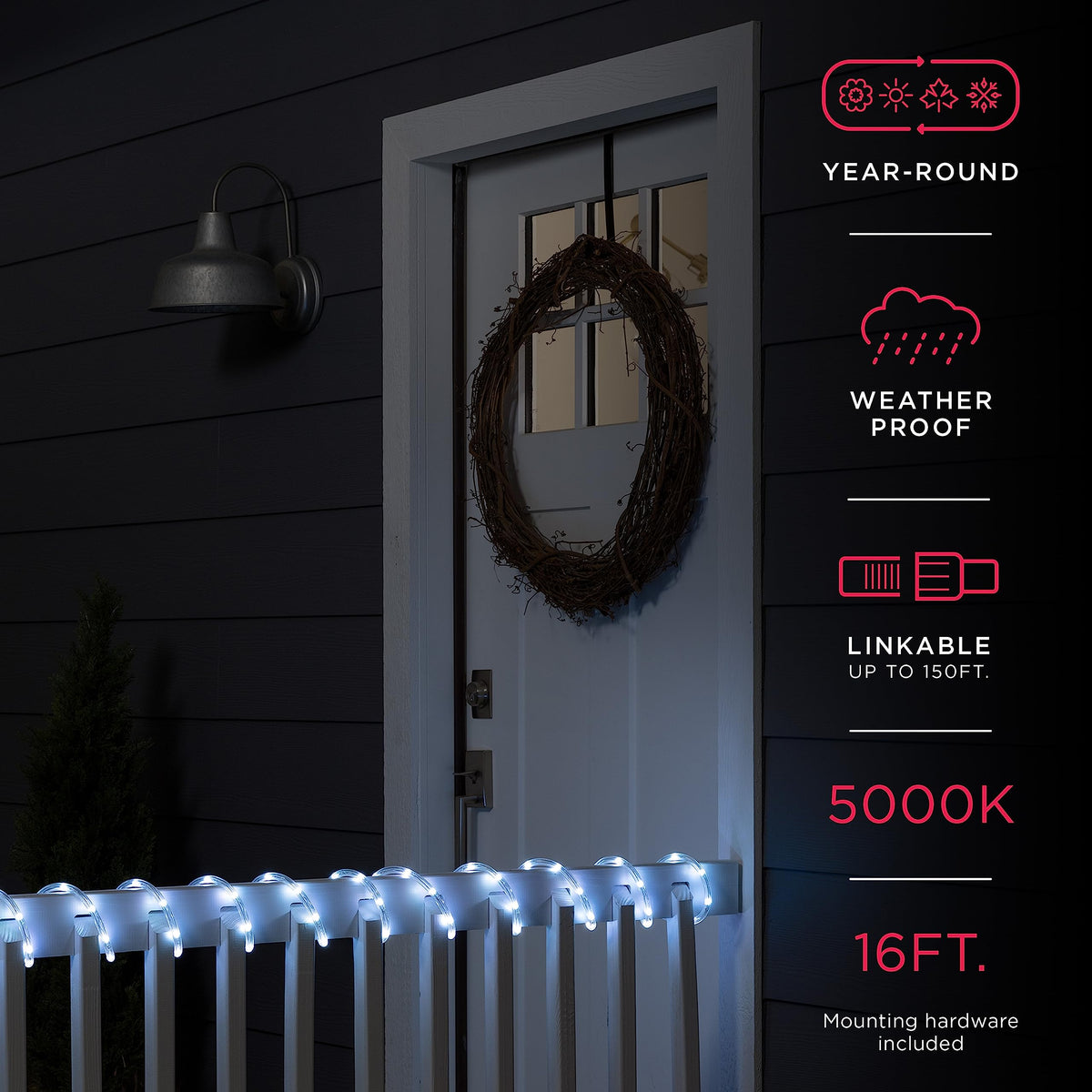 Ultrapro 16Ft Led Rope Lights, Cool White 5000K, Waterproof, Indoor/Outdoor String Lights